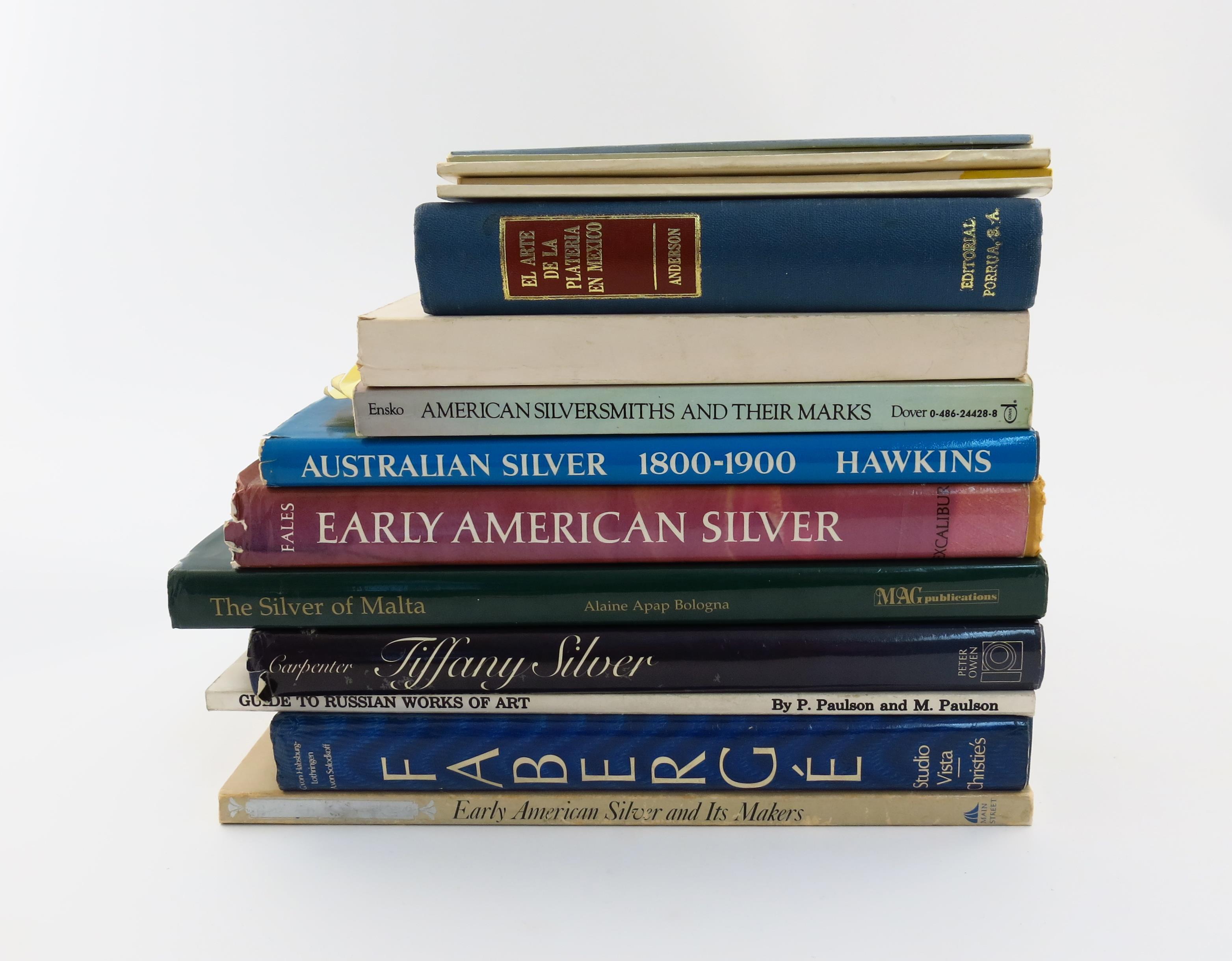 including: Gandy Fales, M., Early American Silver 1970; Hawkins, J. B., Australian Silver 1800-1900, 1973; Ensko, S. G. C., American Silversmiths and Their Marks, 1983 and various pamphlets, museum publications and other volumes. (qty)