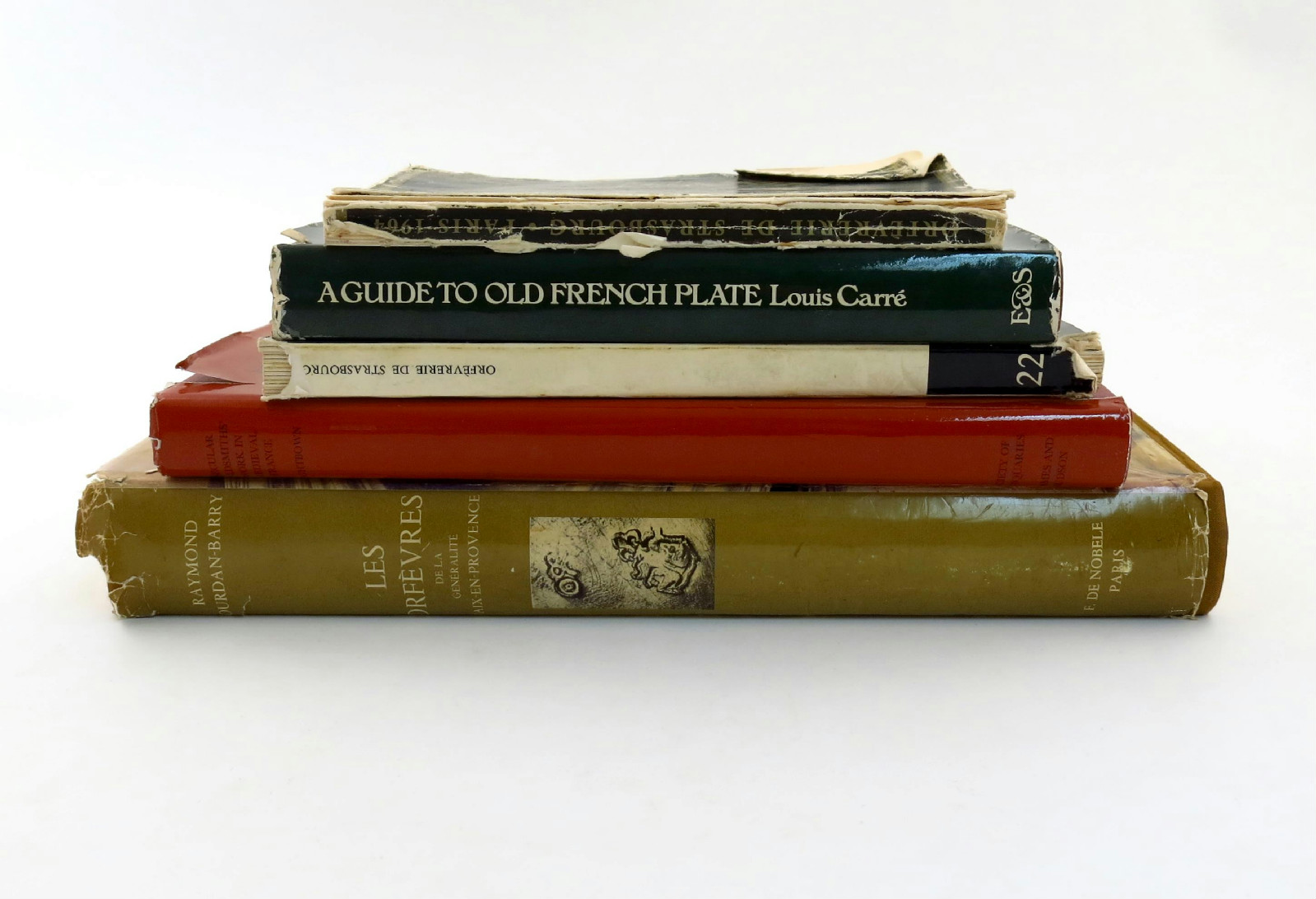 comprising: Jourdan-Barry, R., Les Orfevres de la Generalite D'Aix-en-Provence, hard bound with dust wrapper, 1974; Lightbrown, R. W., Secular Goldsmiths' Work in Medieval France: A History, 1978; Carre, L. A Guide to French Plate, 1971, and two other volumes. (5)