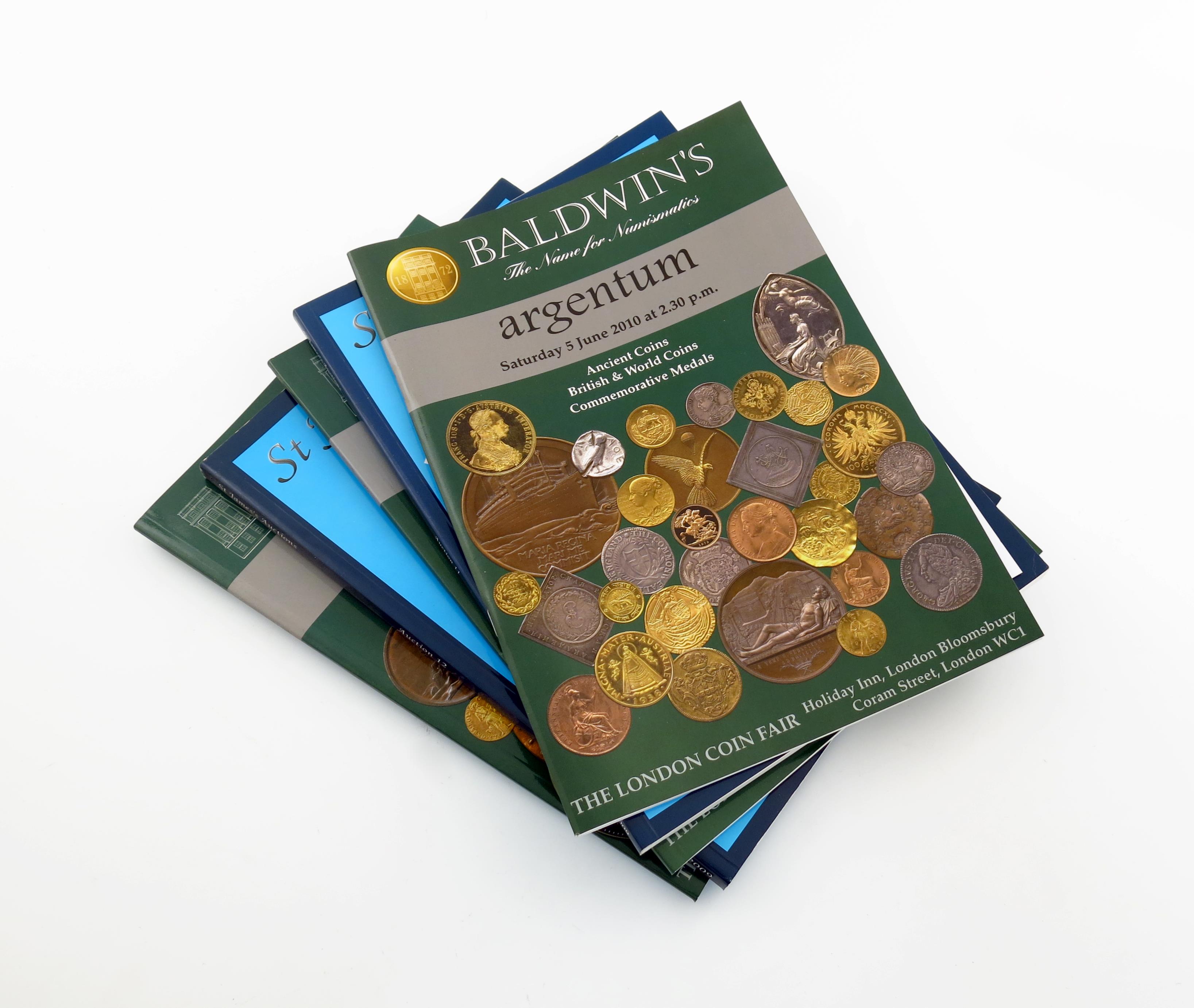 A quantity of auction catalogues relating to coins and medals, including Timothy Millett Limited and Baldwin's, and others. (qty)