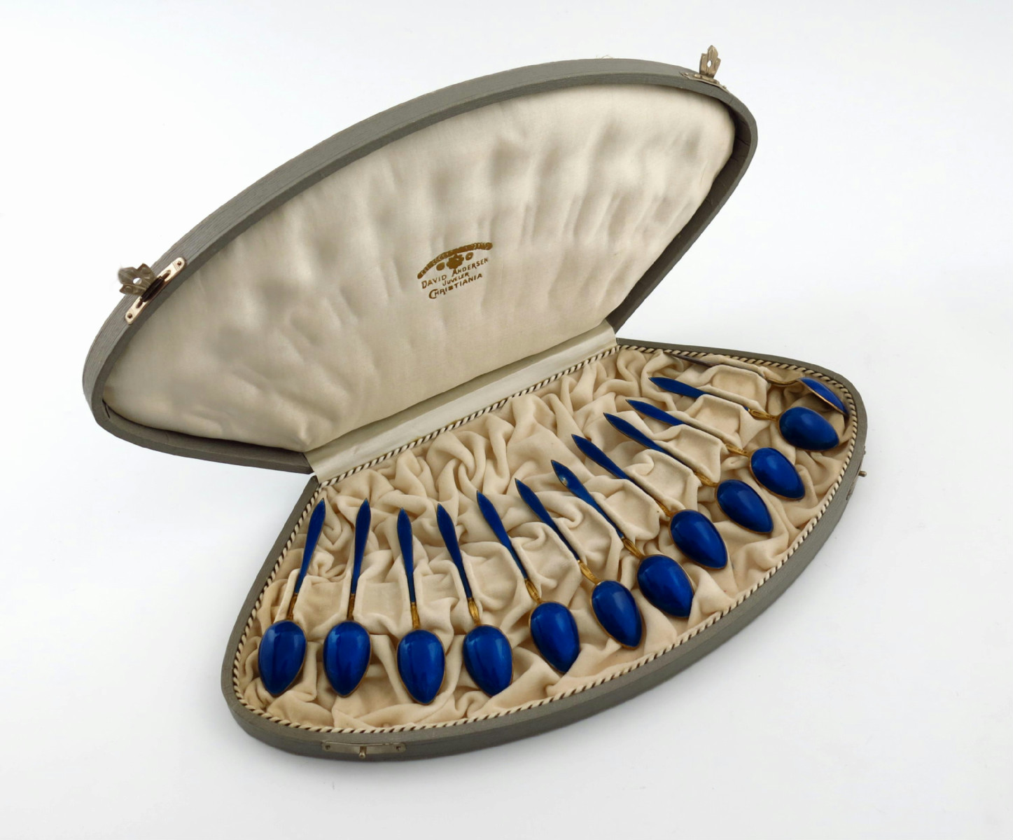 A set of twelve Norwegian silver-gilt and enamel coffee spoons