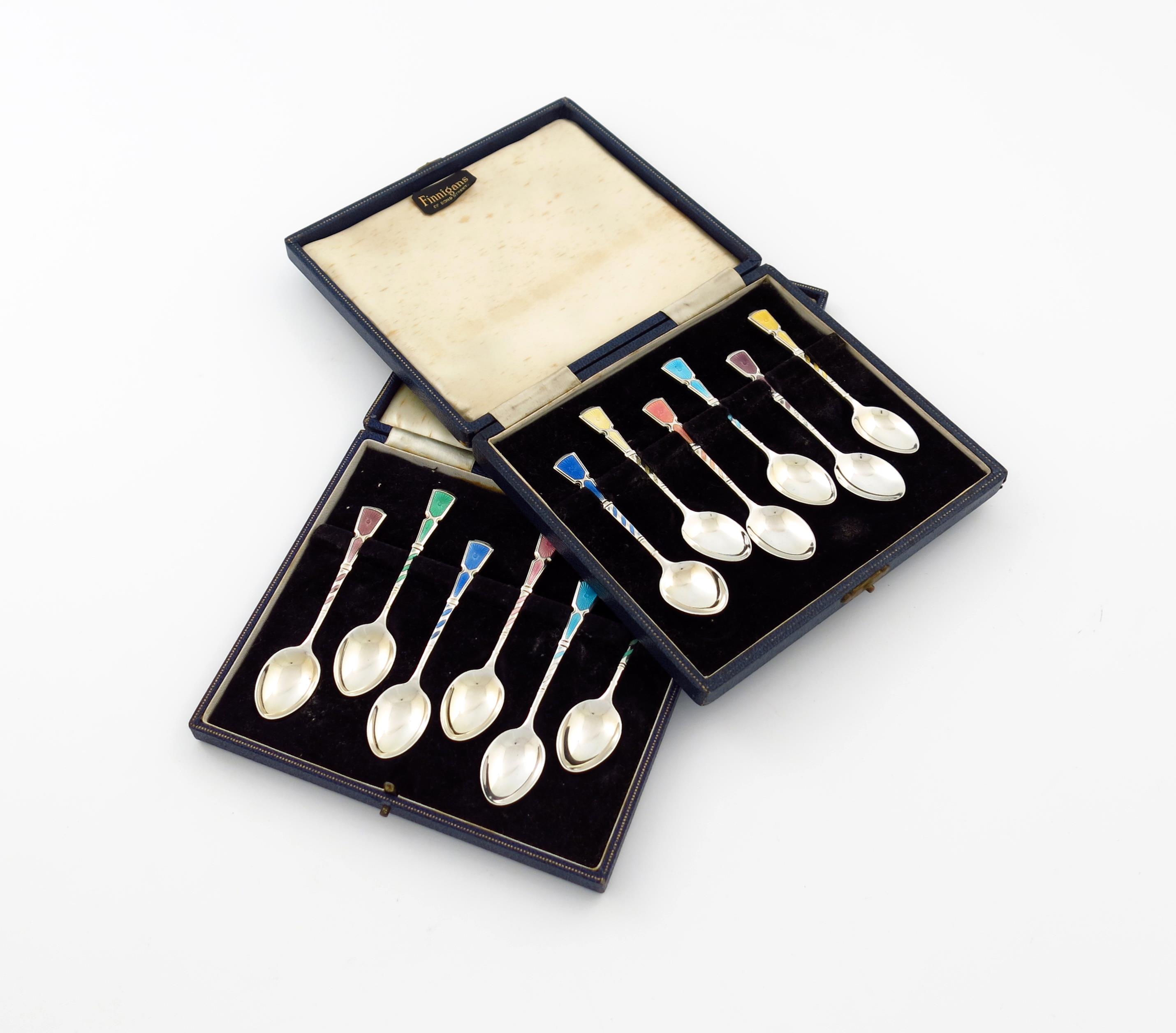 A matched set of twelve modern silver and enamel teaspoons