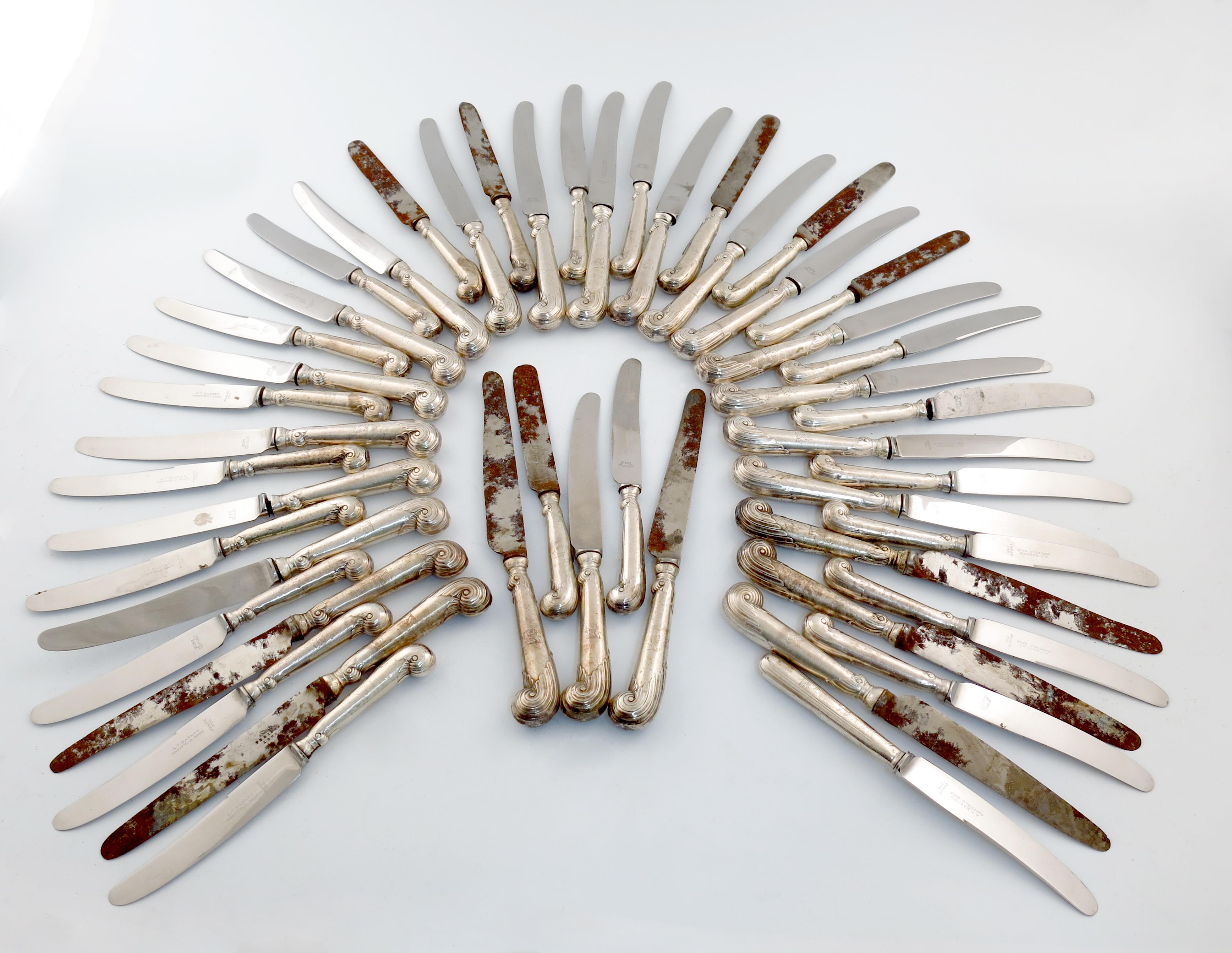 the handles with a crest, comprising twenty-four table knives, (seventeen re-bladed, seven with original blades, and twenty-three dessert knives, (seventeen re-bladed, six with original blades), plus one other knife. (48)