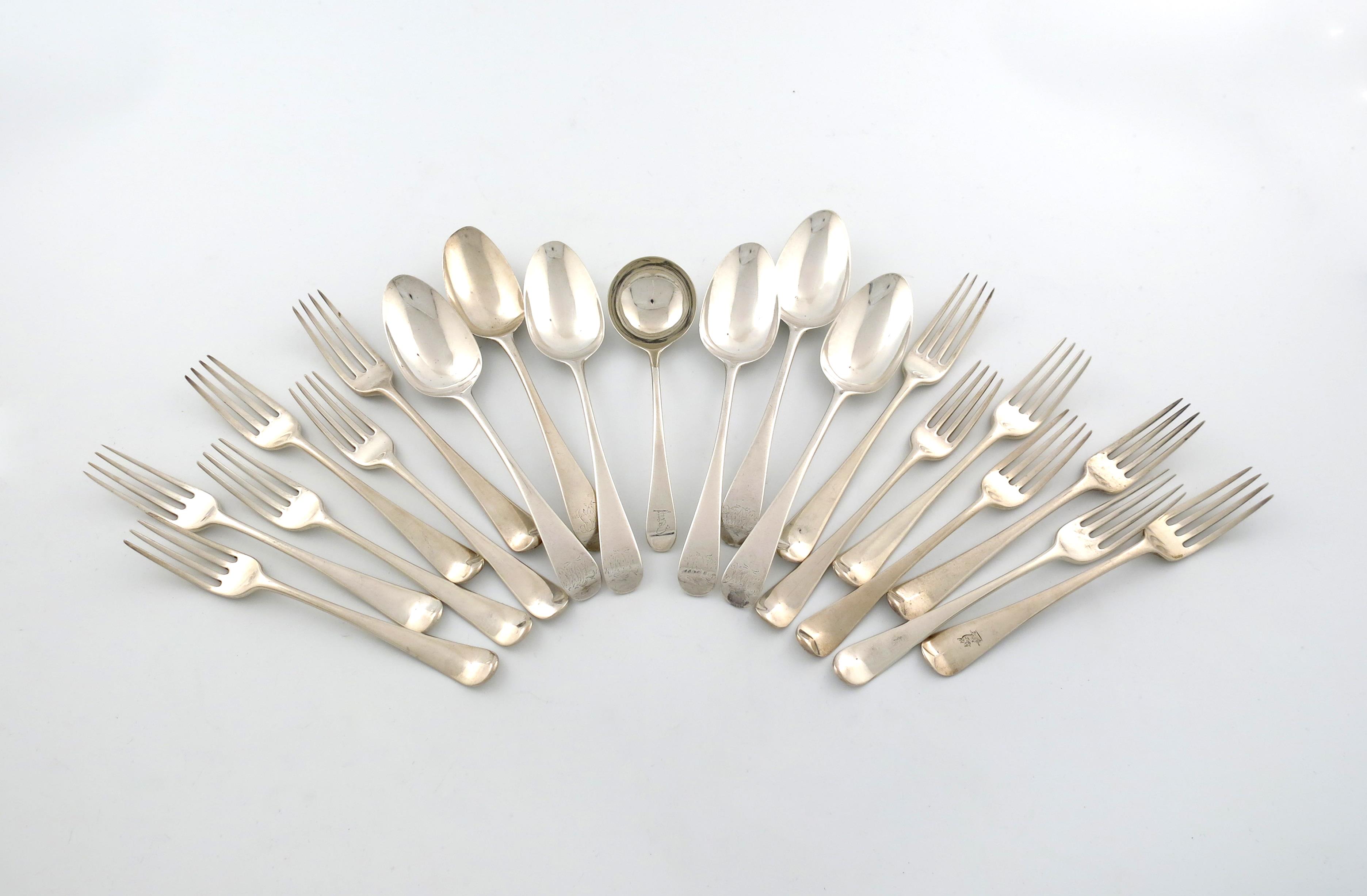 A collection of George III silver Old English pattern flatware
