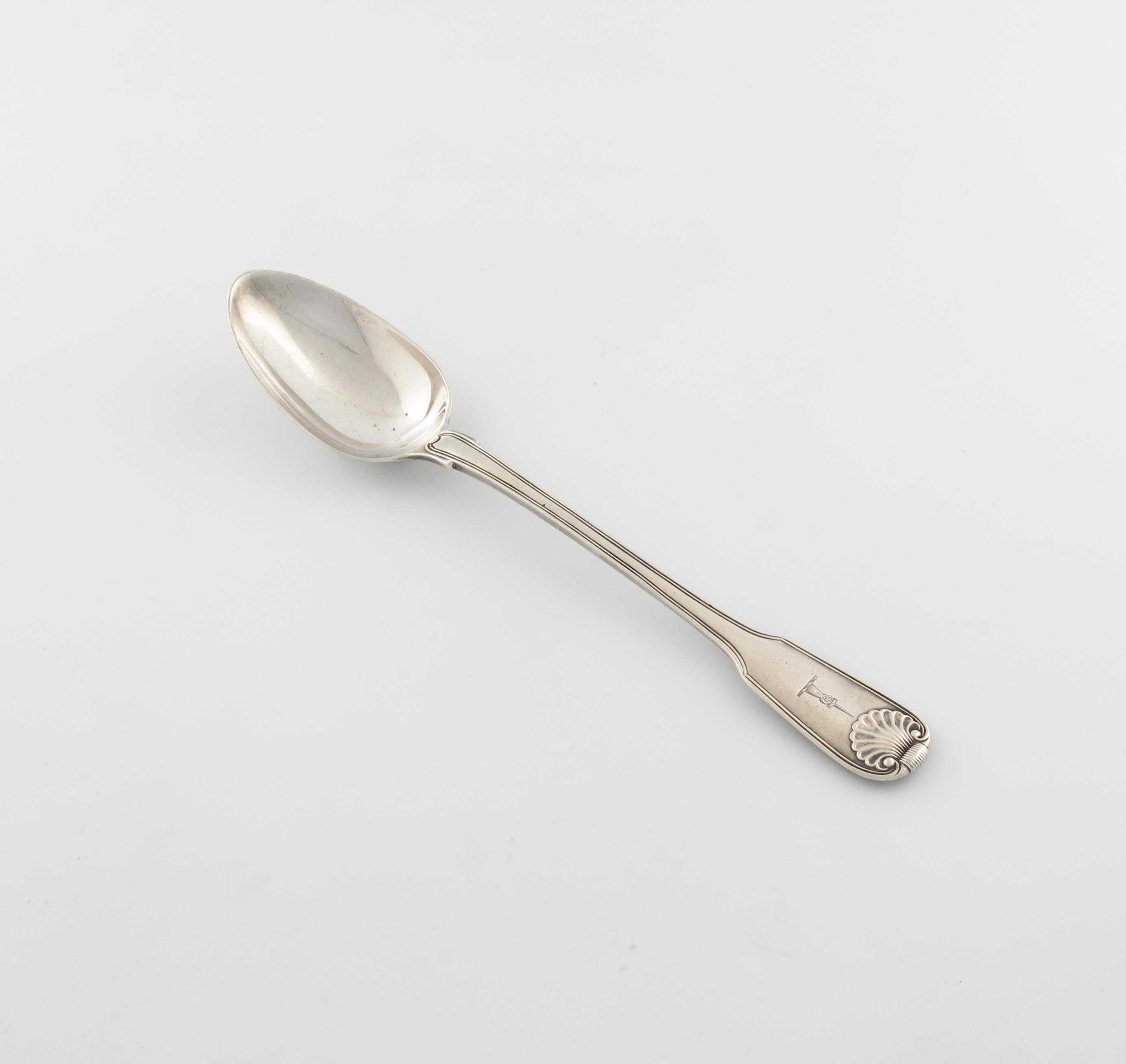 A George III silver Fiddle, Thread and Shell pattern basting spoon,