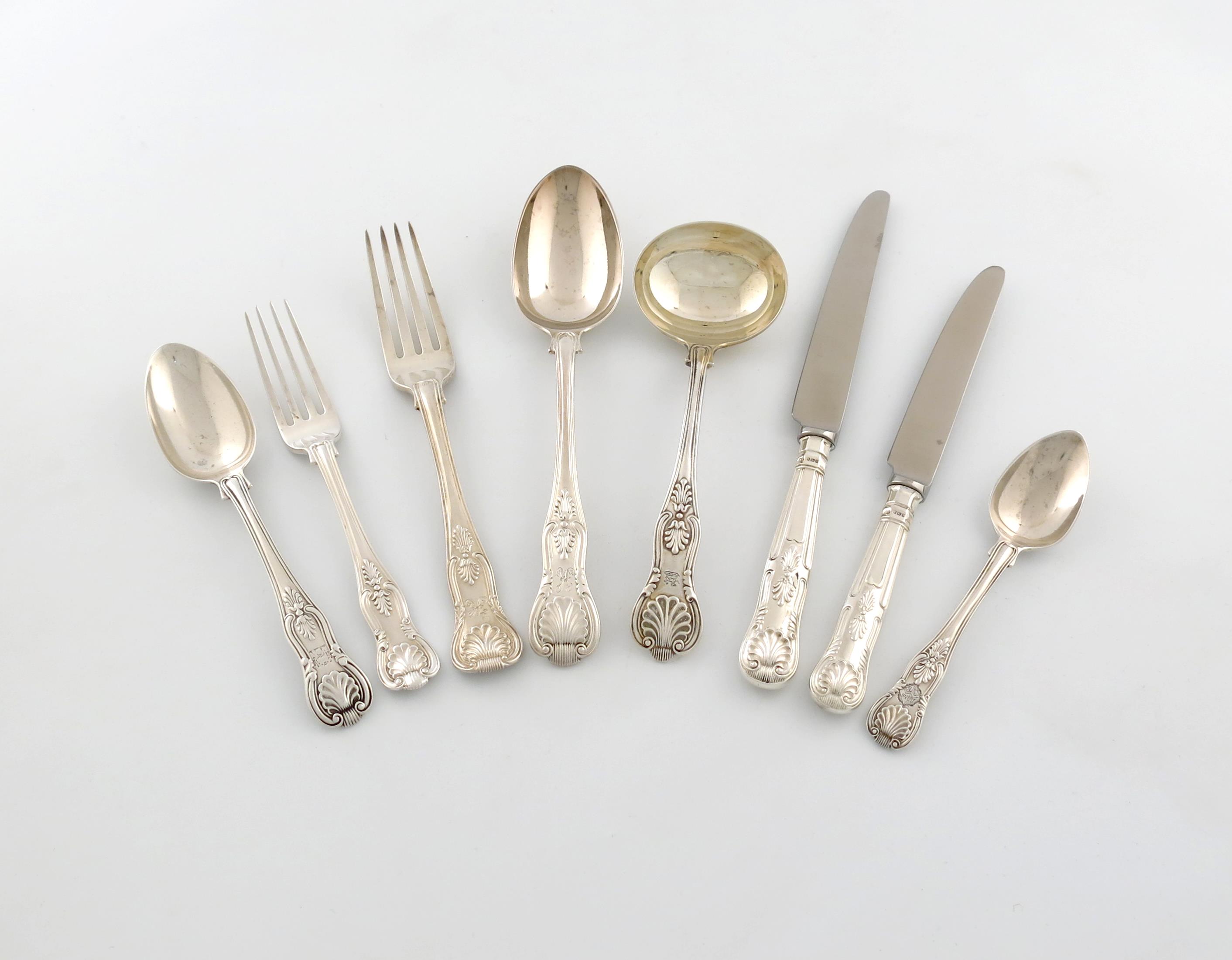 A matched Victorian and later silver King's pattern canteen for eight