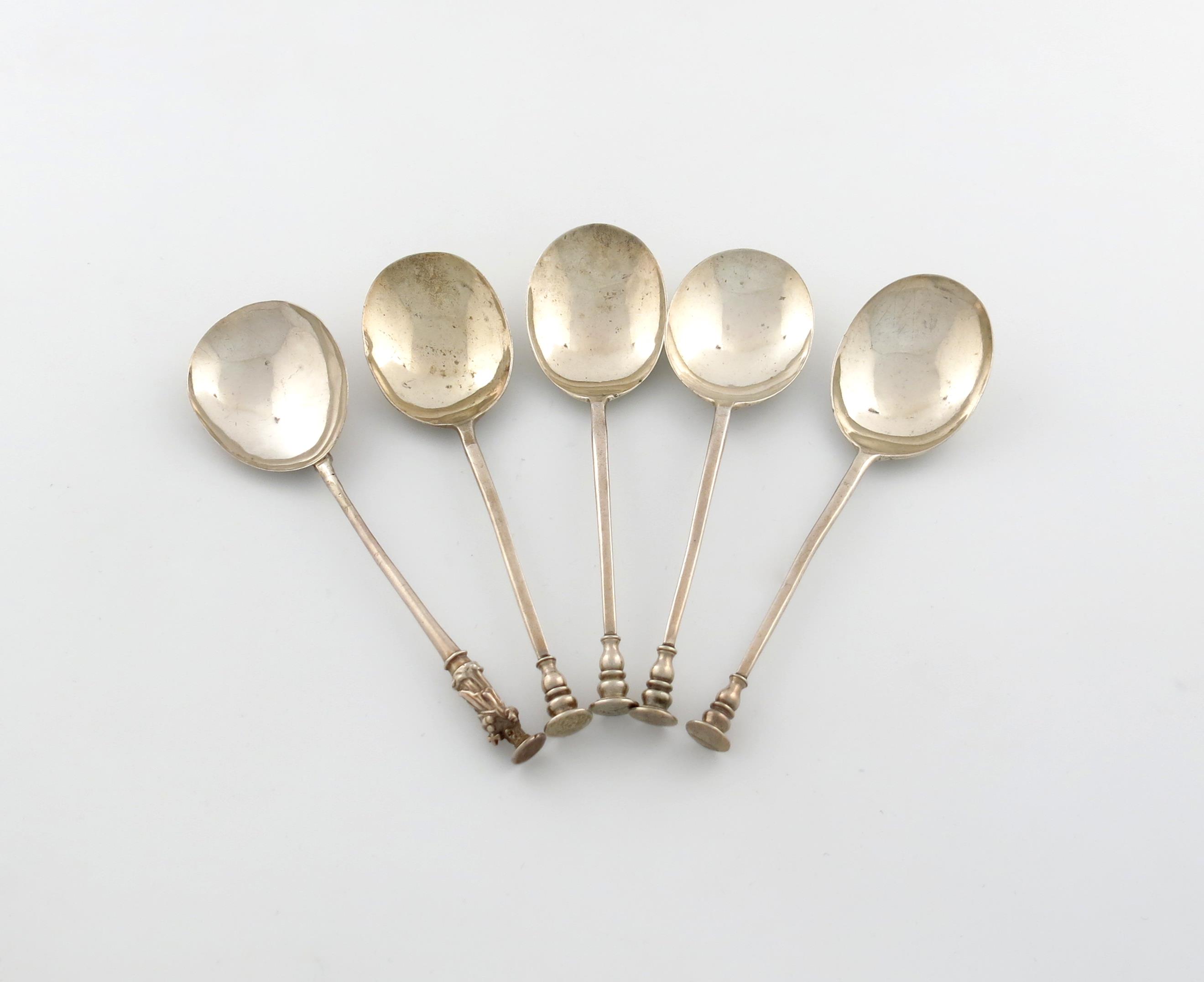 plain seal tops, plus a silver Apostle spoon, with import marks for London 1901, approx. weight 7oz. (5)