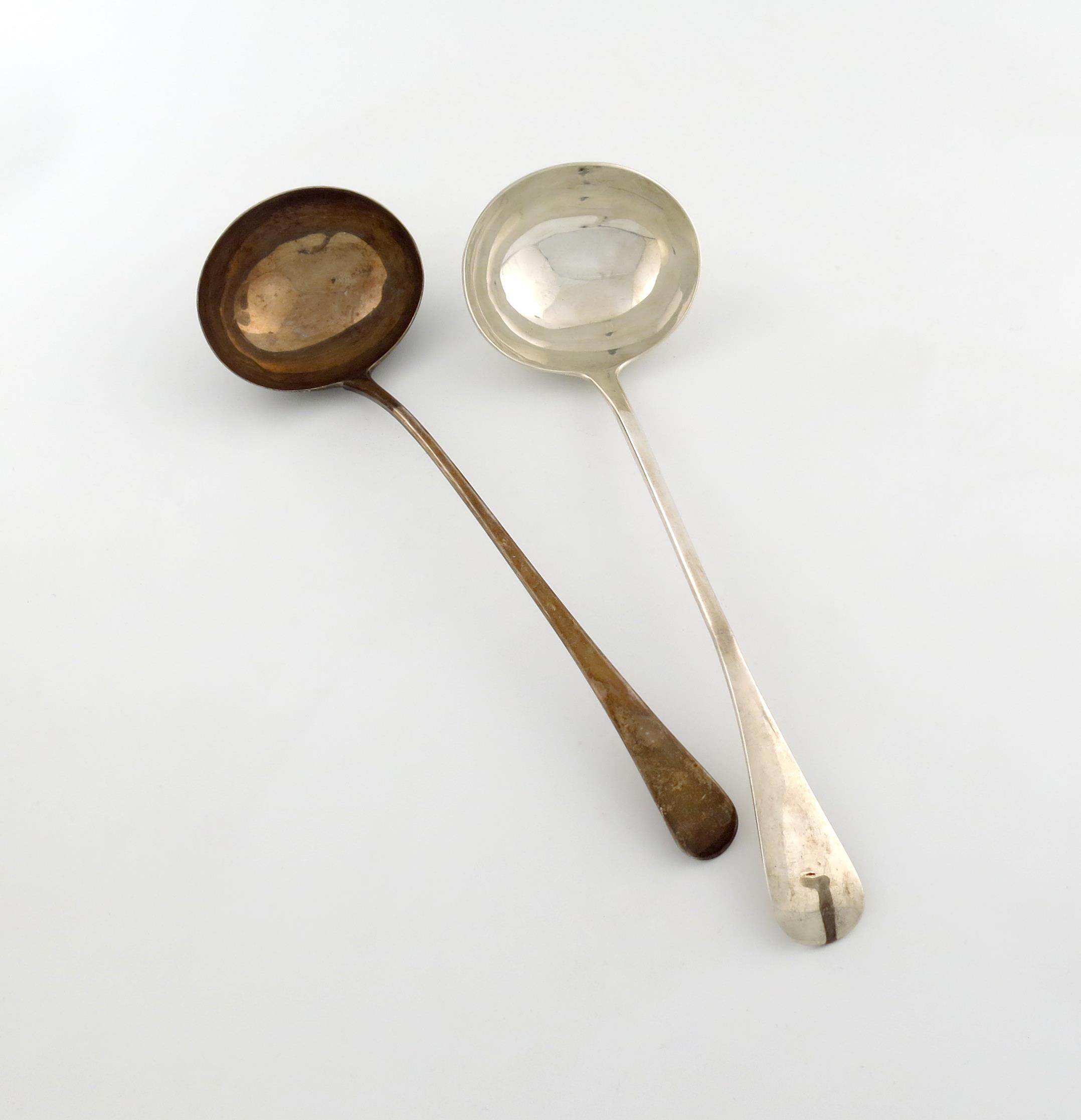 oval bowl, plain terminal, plus a William IV silver Old English pattern soup ladle, by William Schofield, London 1833, oval bowl, plain terminal, approx. weight 14oz. (2)