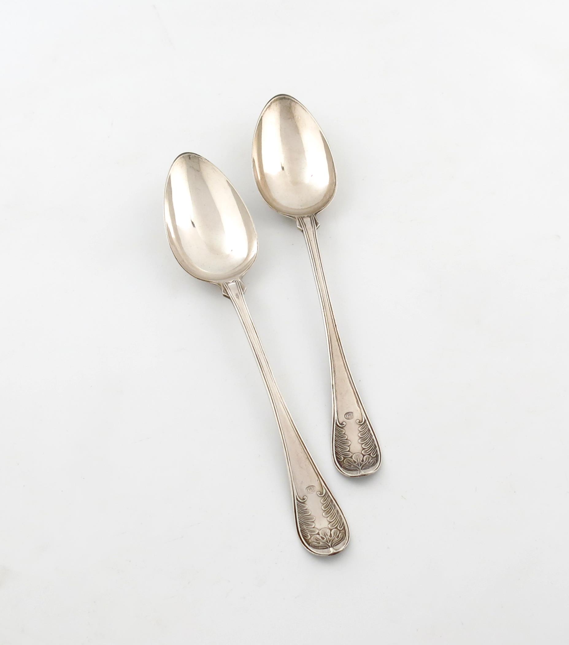 Old English Thread shape with foliate terminals, length 28.5cm, approx. weight 6.5oz. (2)