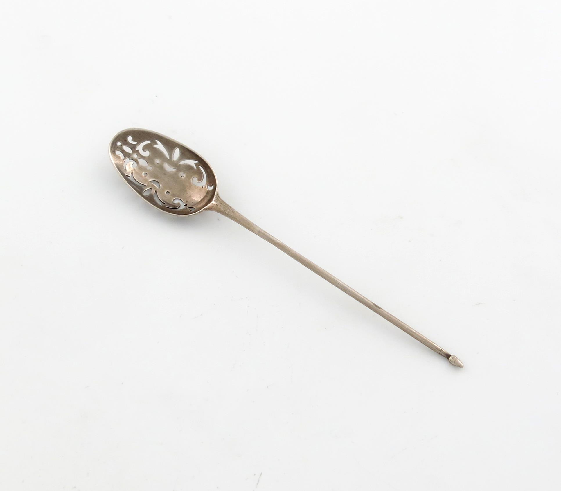 An early 18th century Britannia standard silver mote spoon,