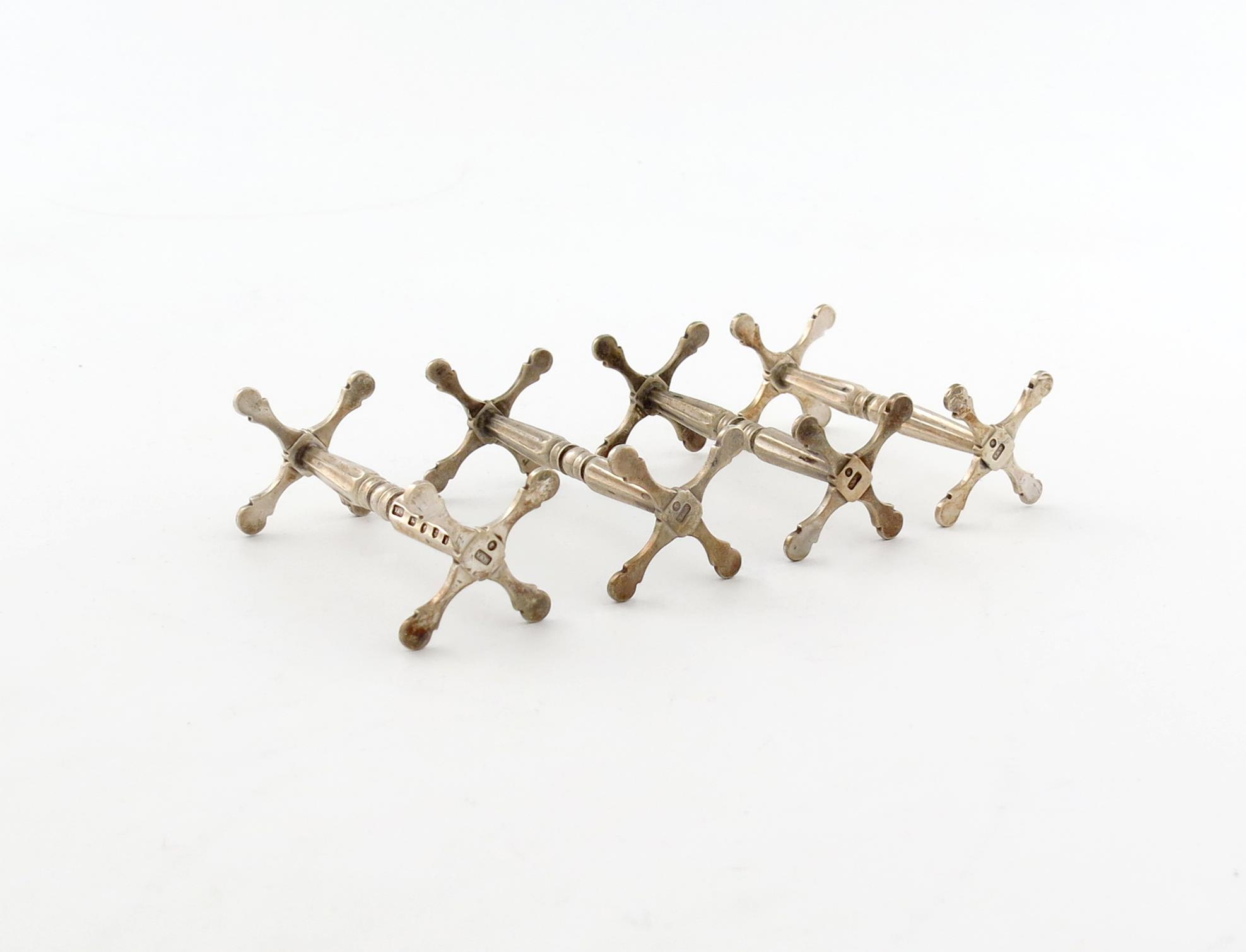 fluted and baluster form, plain cross frame ends, length 6.8cm, approx. weight 3.5oz. (4)