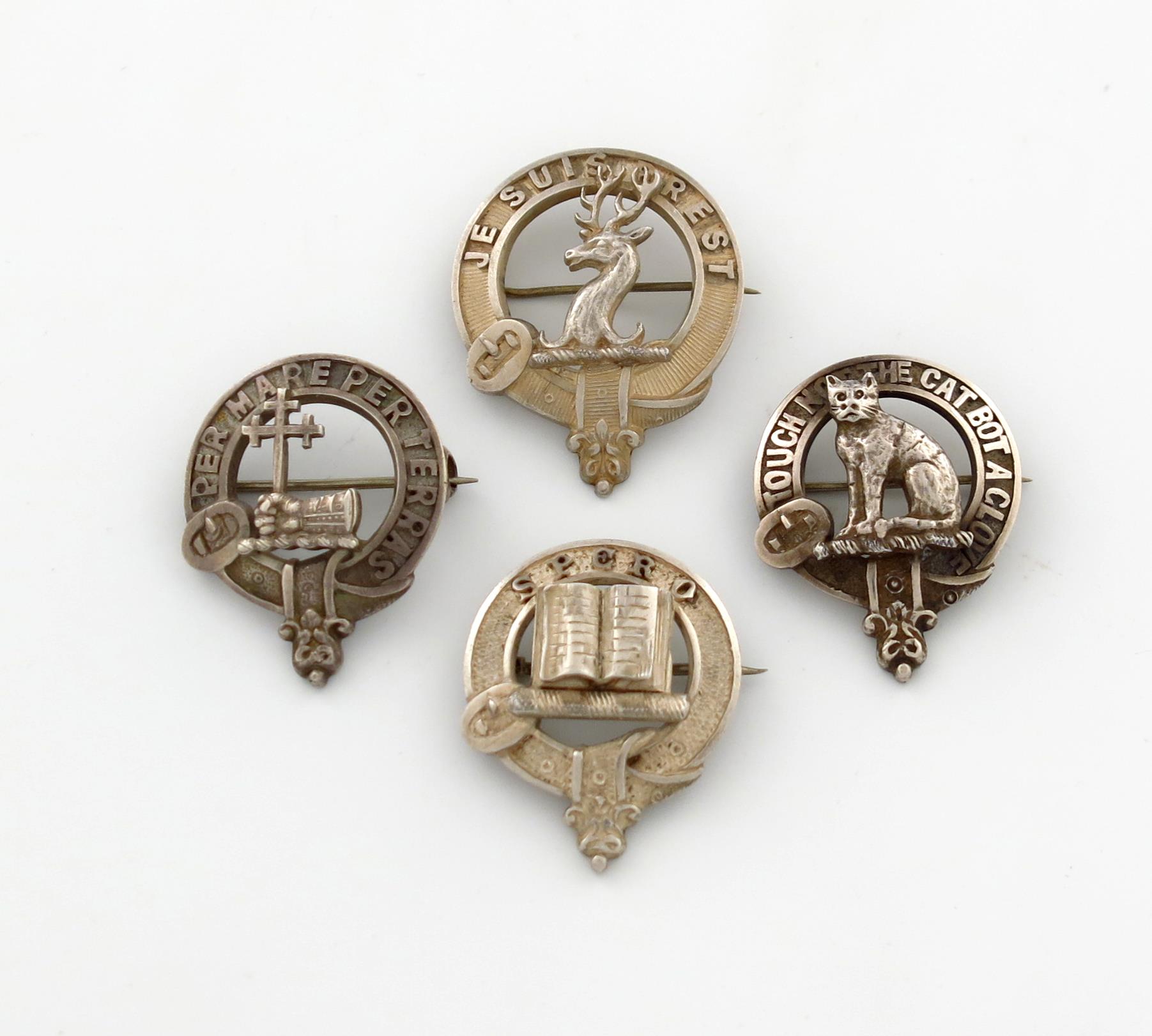 A small collection of four Scottish silver clan badges