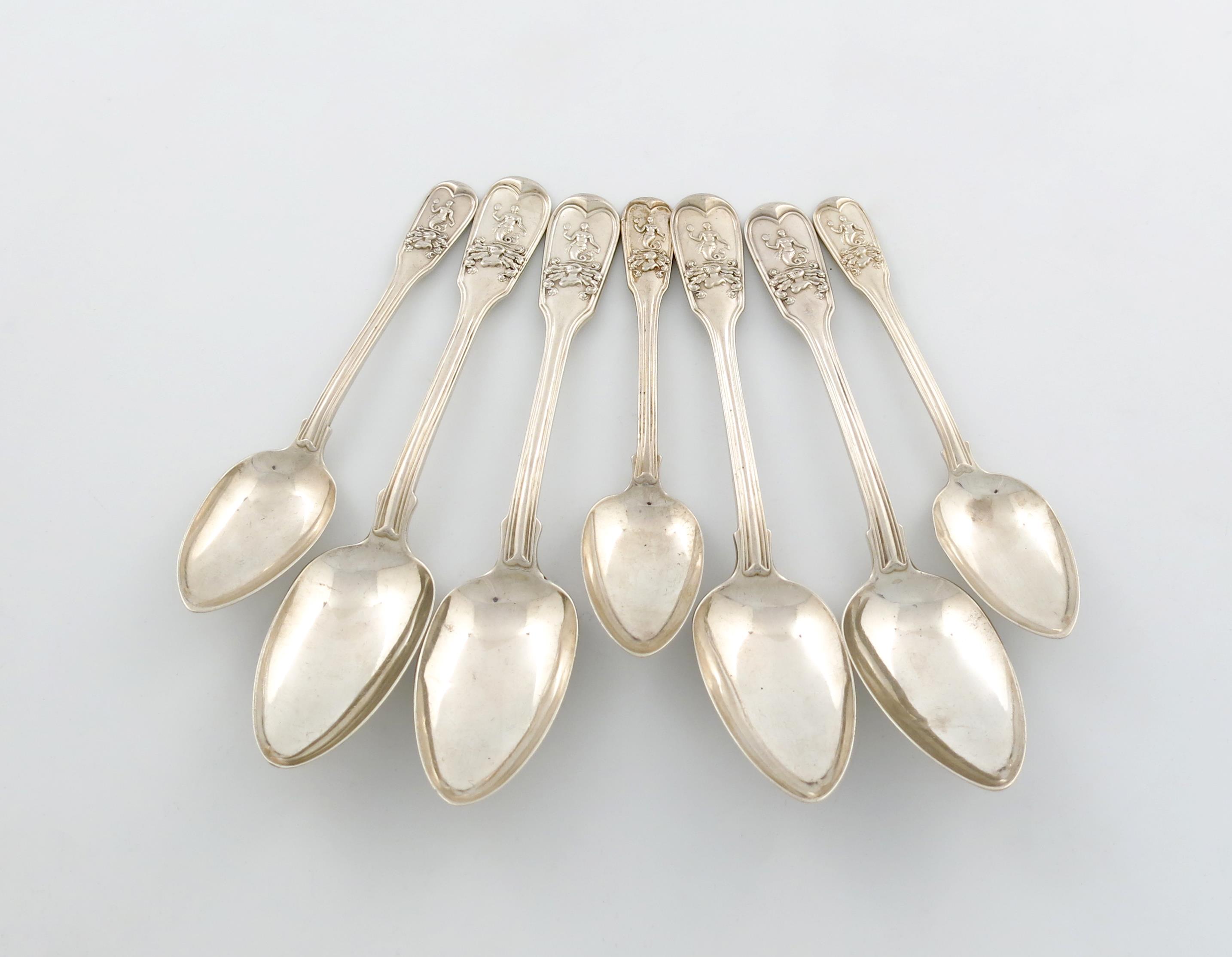 A George IV / Victorian Scottish matched silver set of four Private Die Fiddle and Thread pattern tablespoons and three dessert spoons,