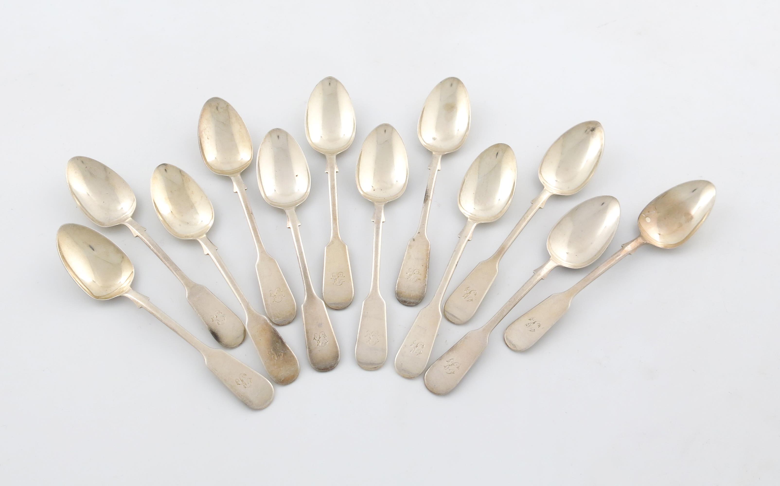 A set of twelve Victorian Scottish silver Fiddle pattern teaspoons,