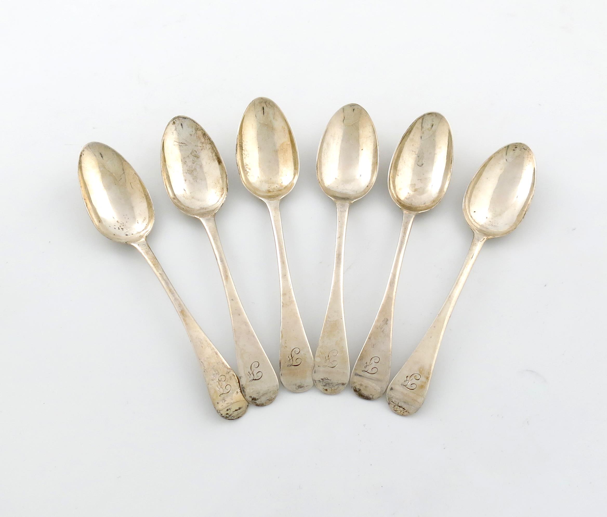 A set of six George III Scottish silver Old English pattern dessert spoons