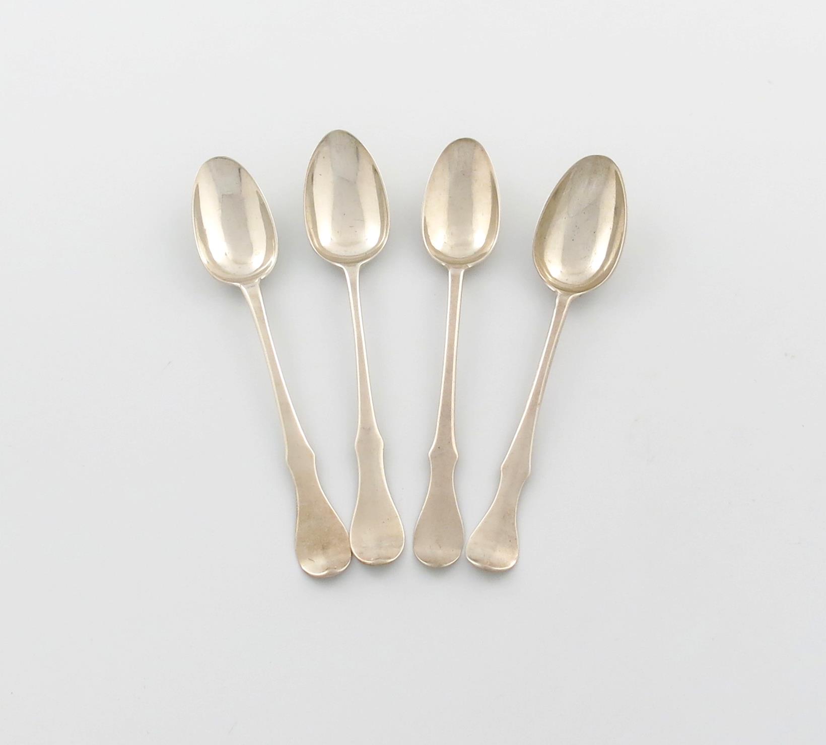comprising; one with maker's mark only D.M, probably for David Manson, Dundee, one unmarked, one with a worn maker's mark, and one marked TA, the reverse of the terminal with initials, the others with initials and crests, approx. weight 1.4oz.