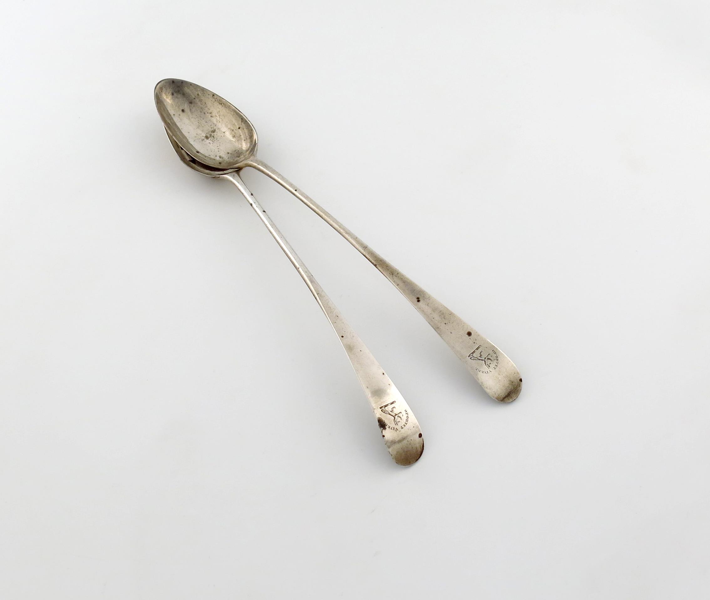 A matched pair of George III Scottish silver basting spoons
