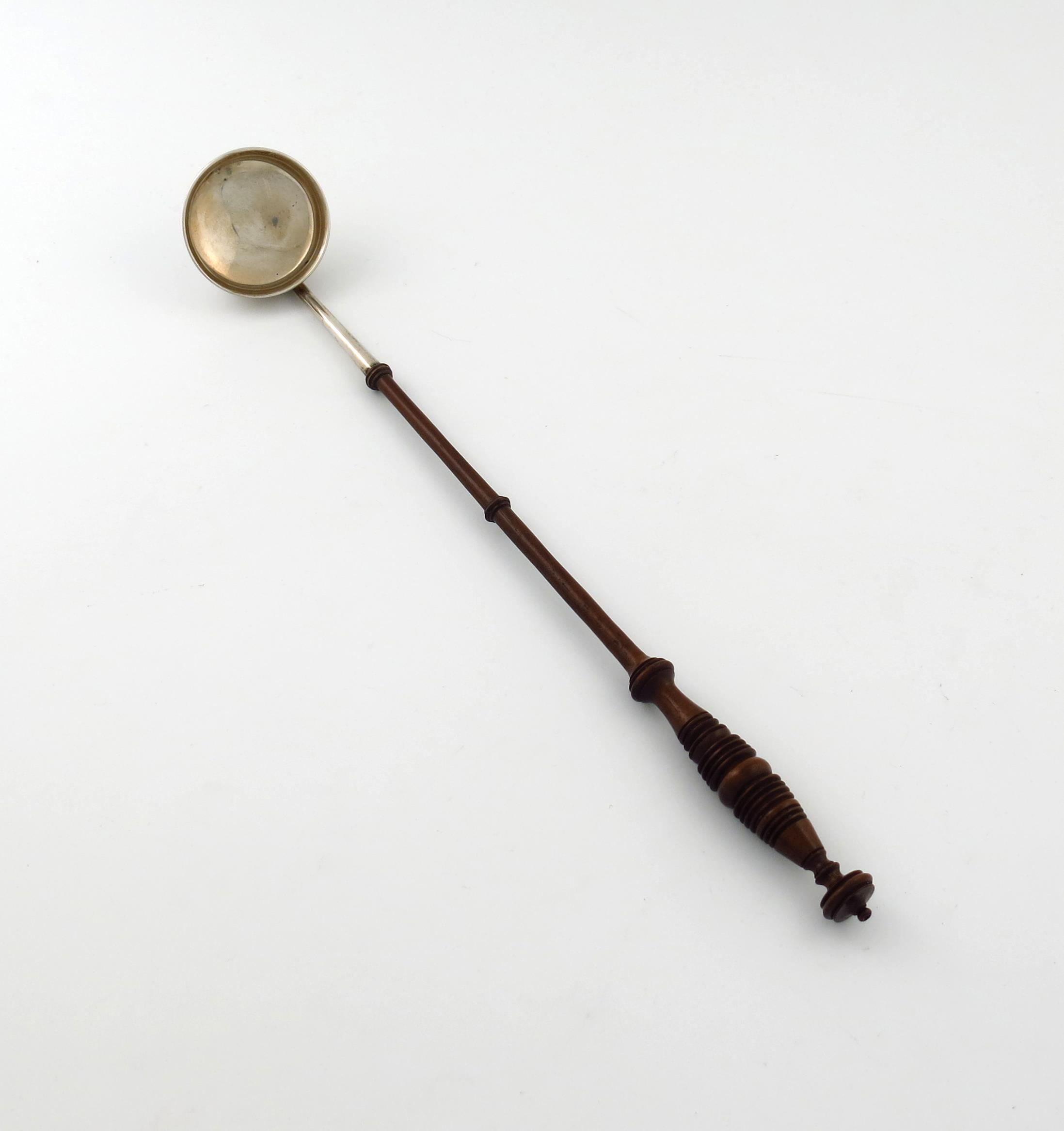 circular bowl, turned wooden baluster handle, length 45.8cm.