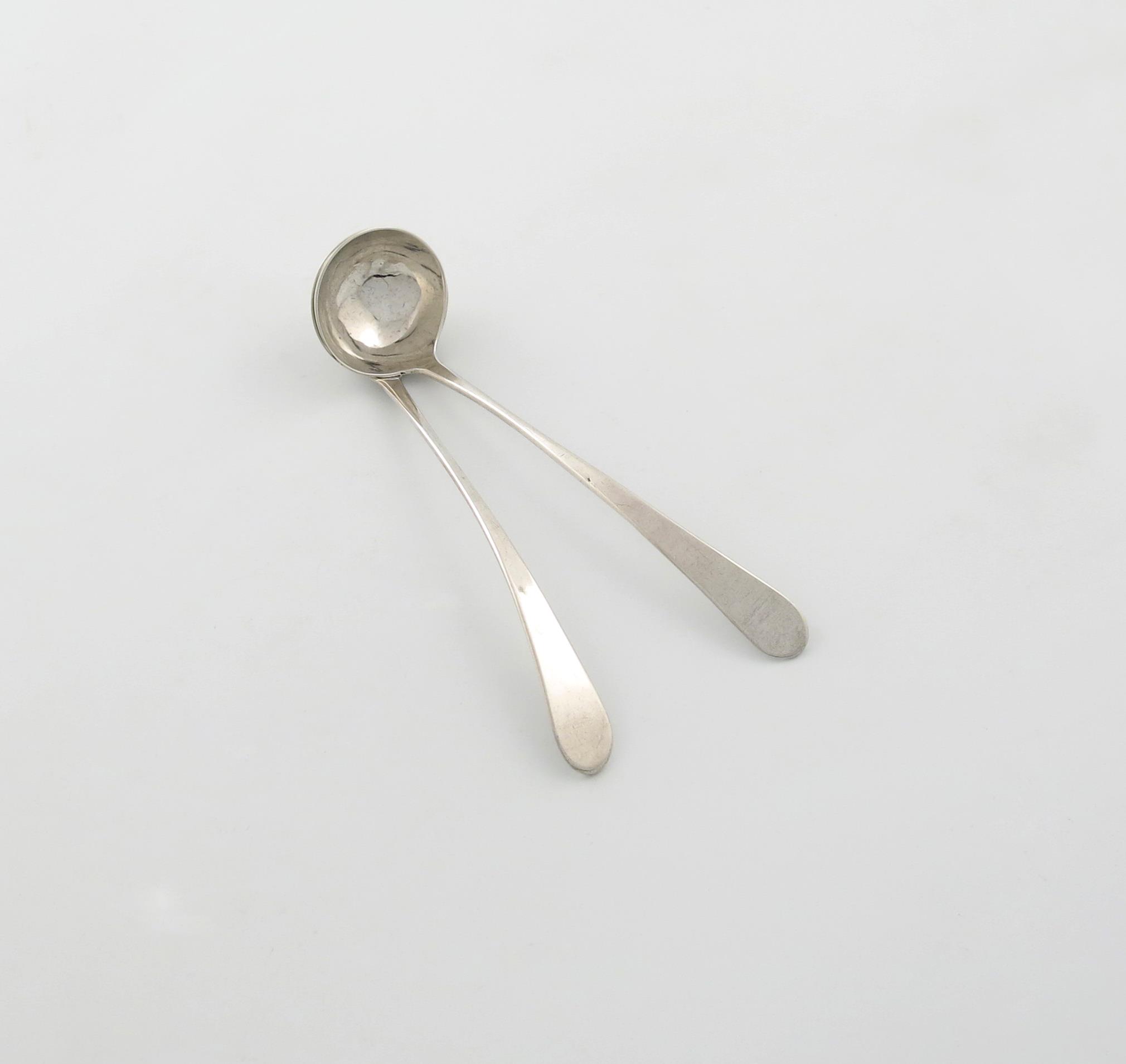 A pair of George III Scottish silver Celtic Point pattern toddy ladles,