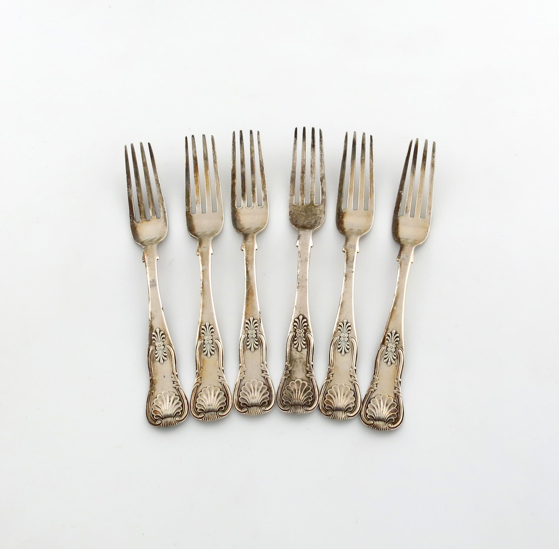 A set of six early Victorian Scottish silver single-struck King's pattern table forks