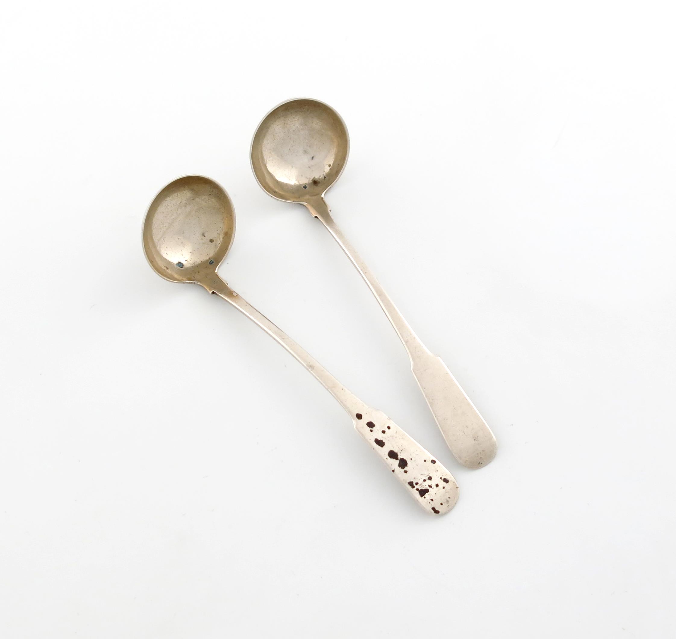 A pair of early 19th century Scottish provincial silver Fiddle pattern toddy ladles