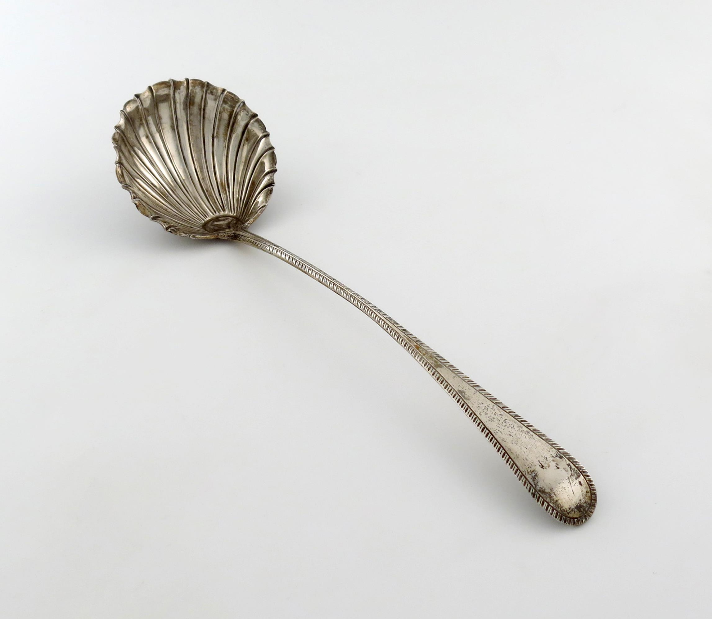 A George III Scottish silver Feather-edge pattern soup ladle,