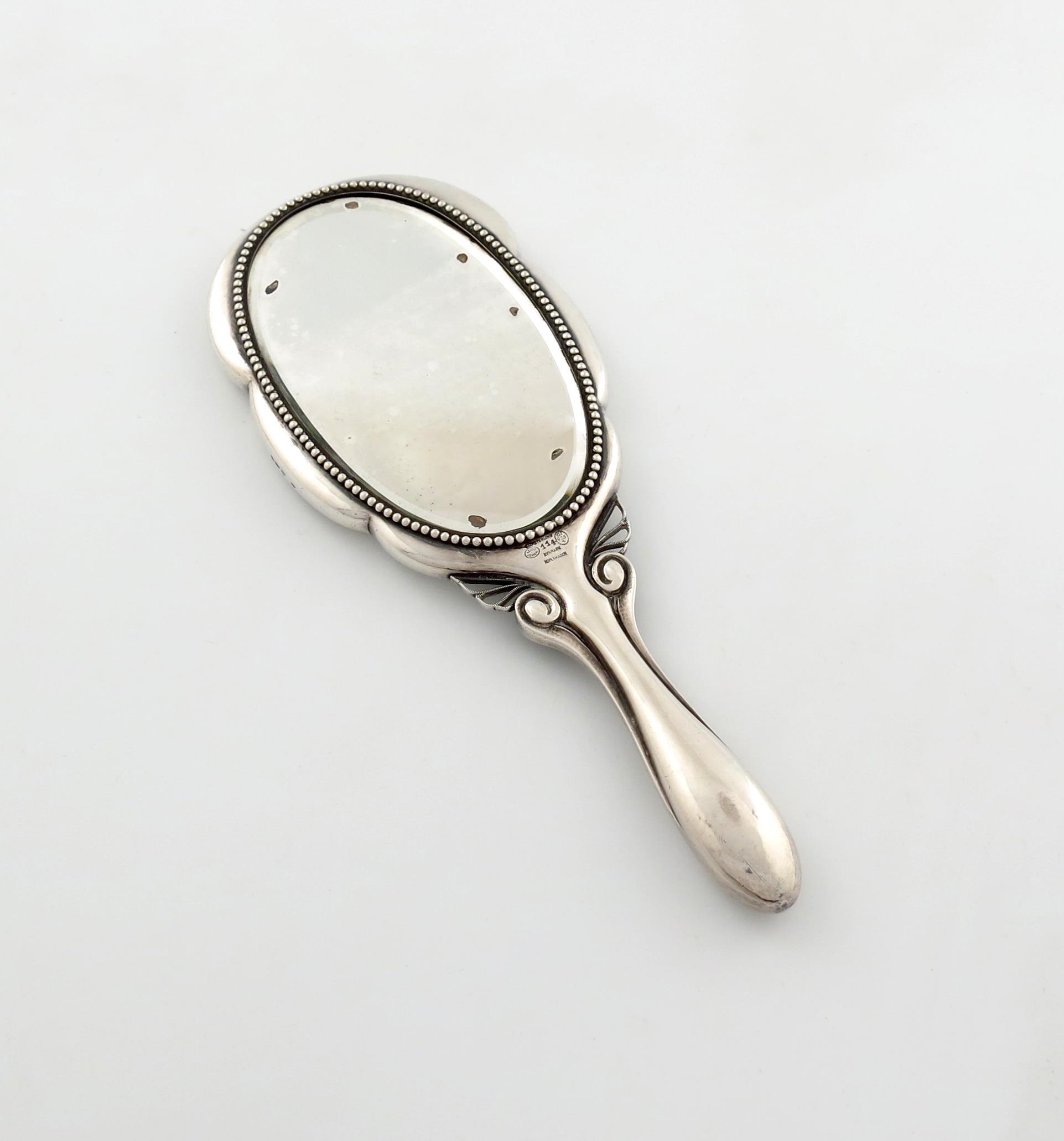 By Georg Jensen, a Danish silver hand mirror,