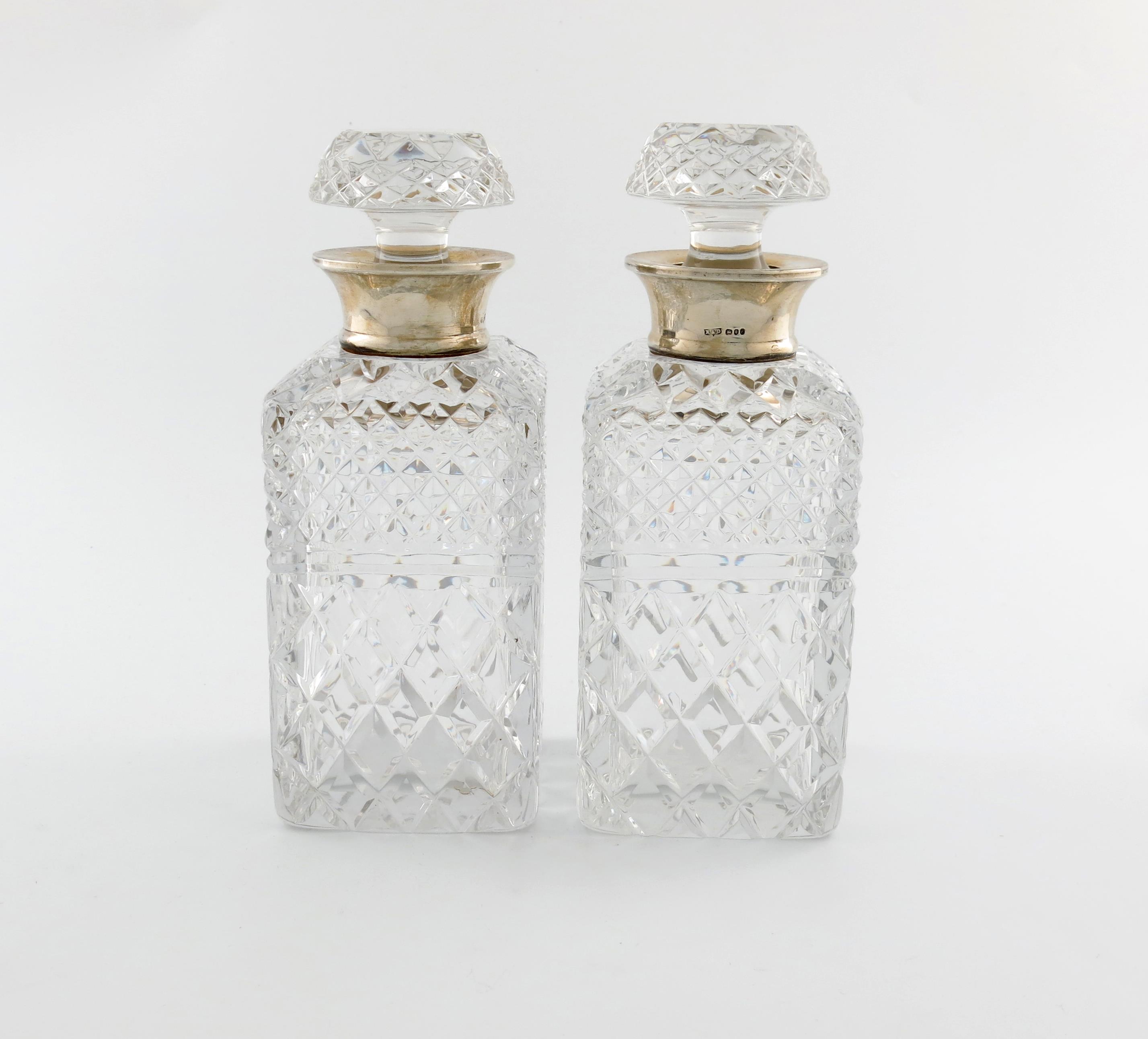 A pair of modern silver-mounted cut glass decanters