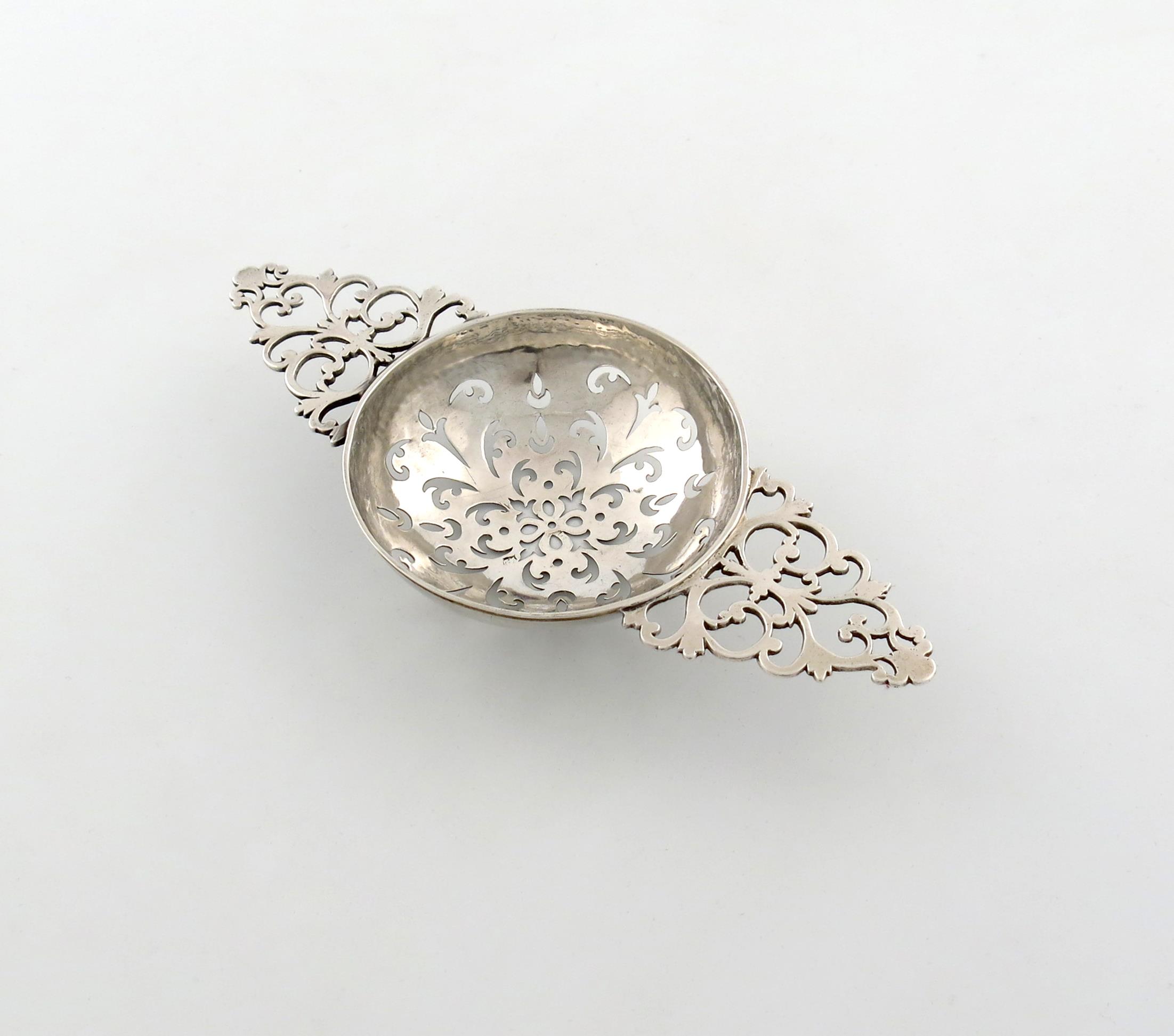 A George II silver two-handled lemon strainer