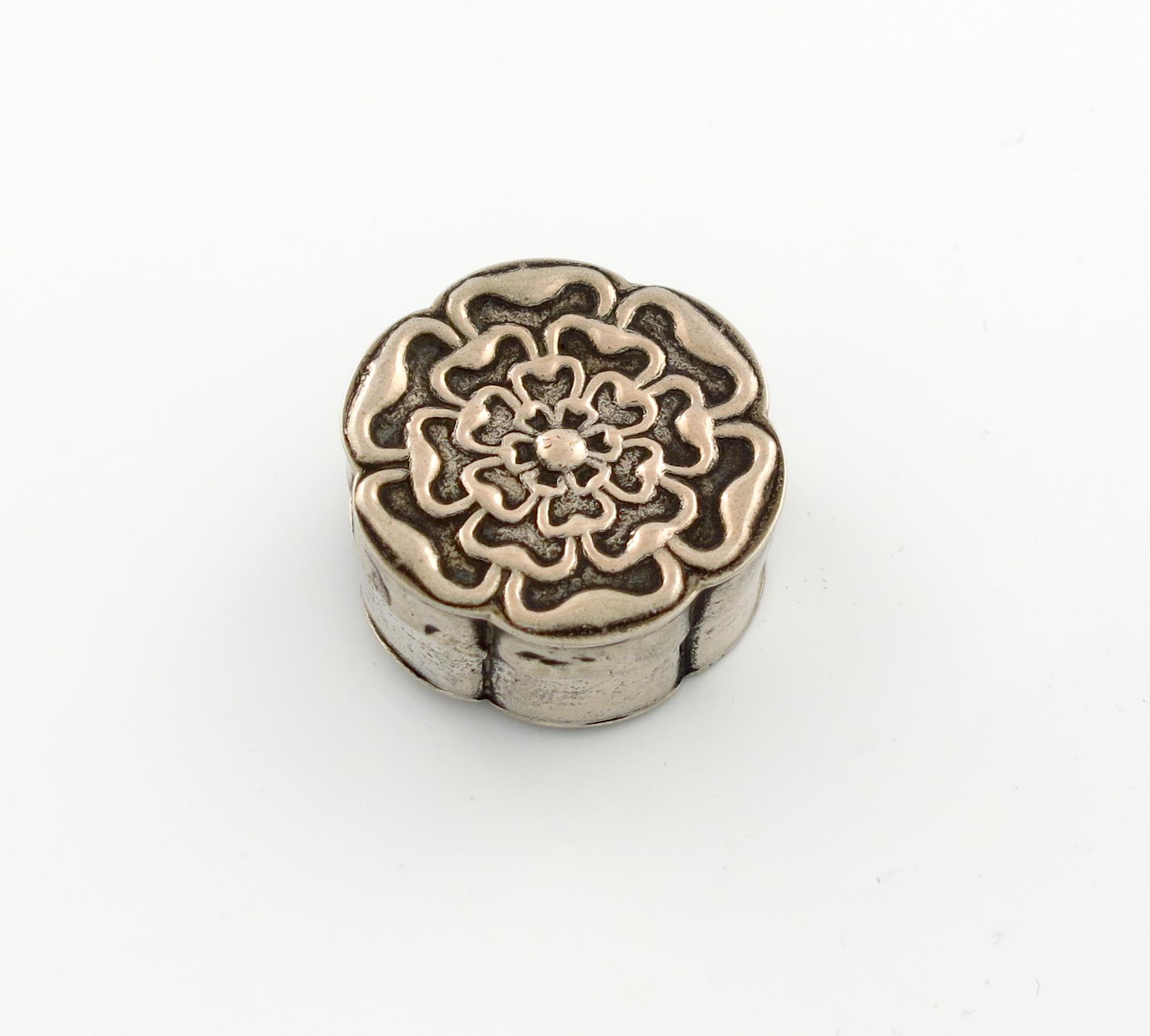of Tudor rose form, pull-off cover, diameter 4cm, approx. weight 0.4oz.