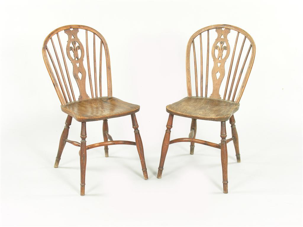 A pair of early 19th century yew Windsor side chairs
