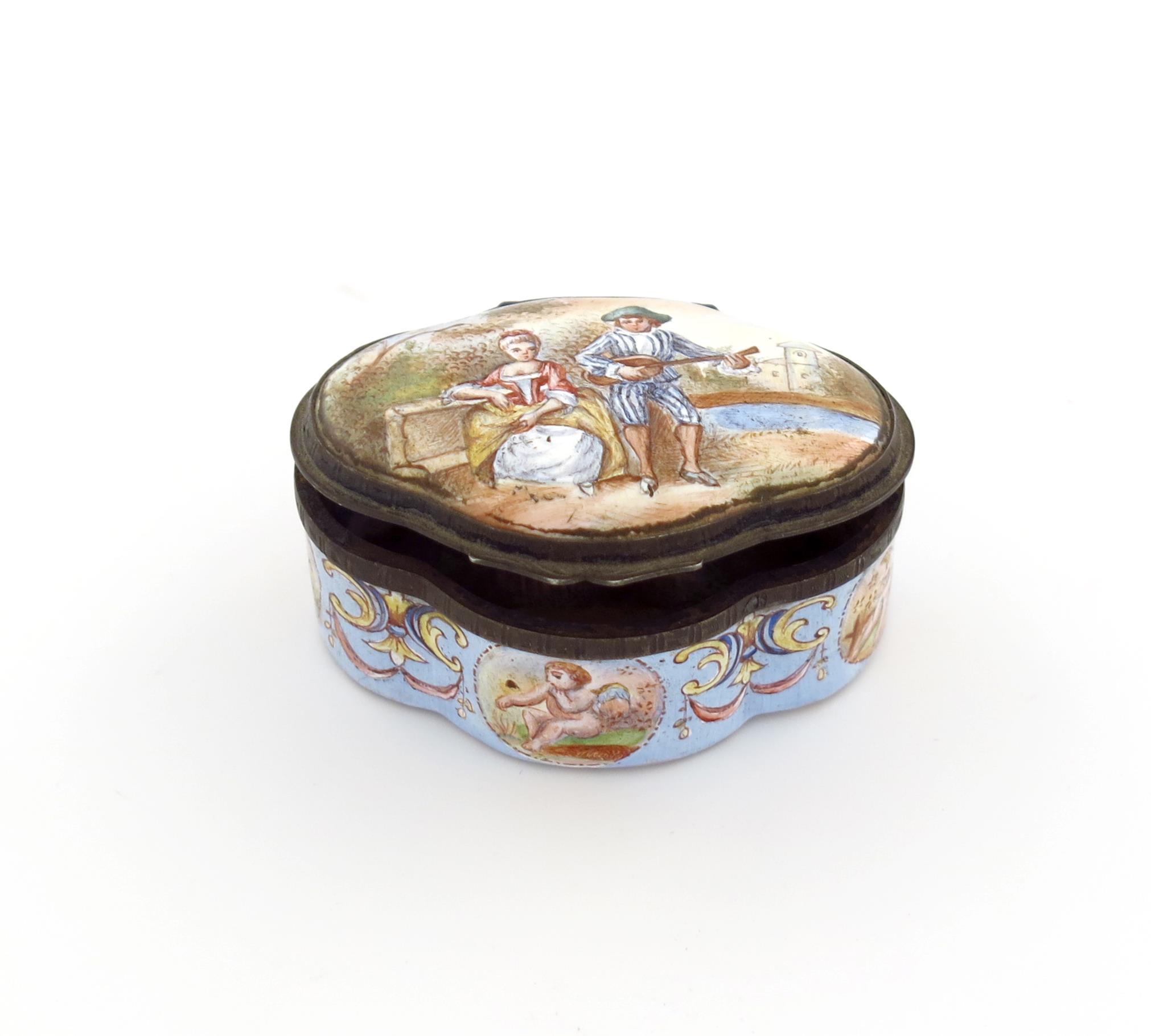 mounts loose, shaped oval form, decorated with figural scenes and landscapes, length 5.2cm.