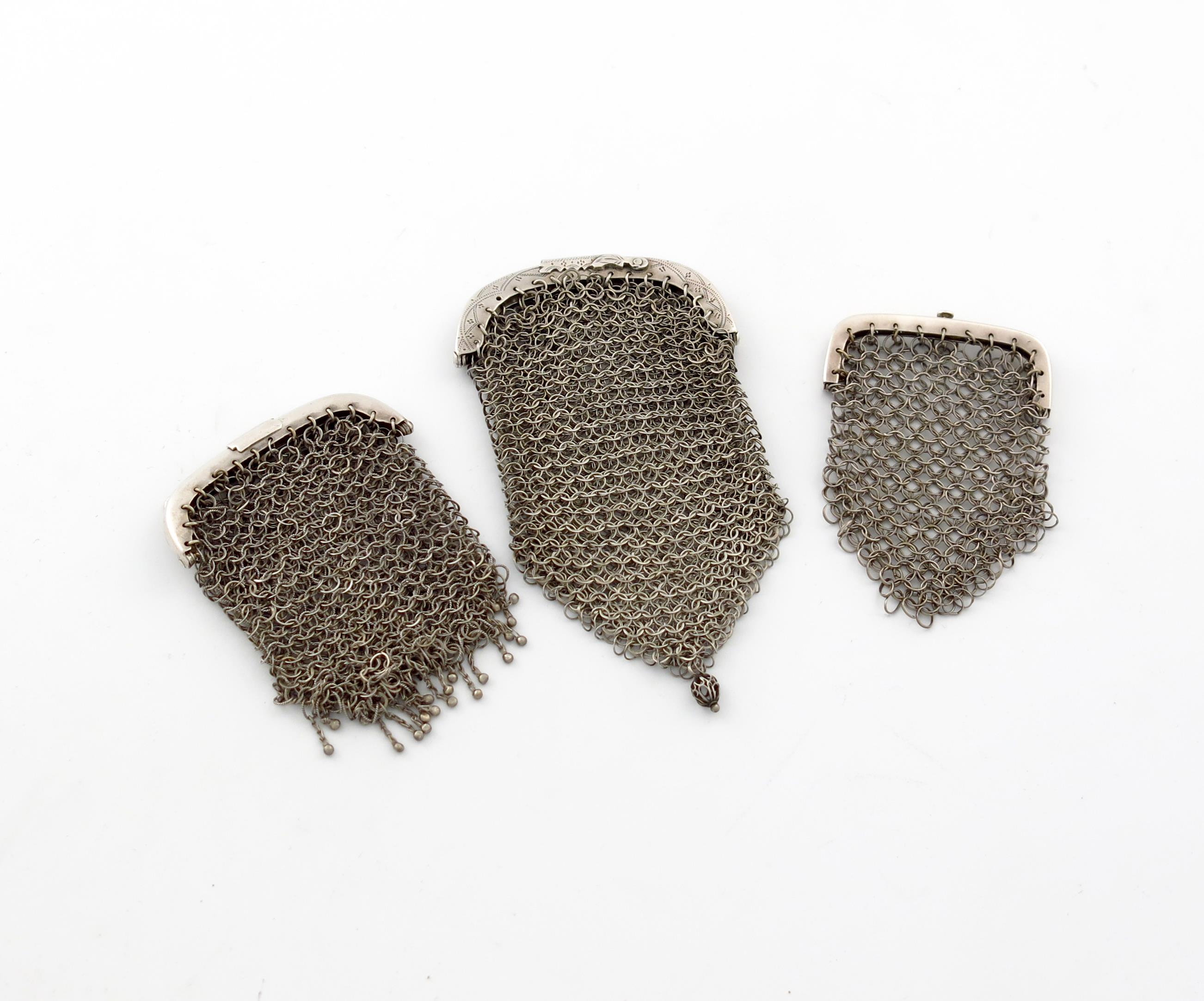 by Cocks and Bettridge, Birmingham 1811, plain mount, plus two other unmarked silver mesh purses, approx. total weight 4oz. (3)