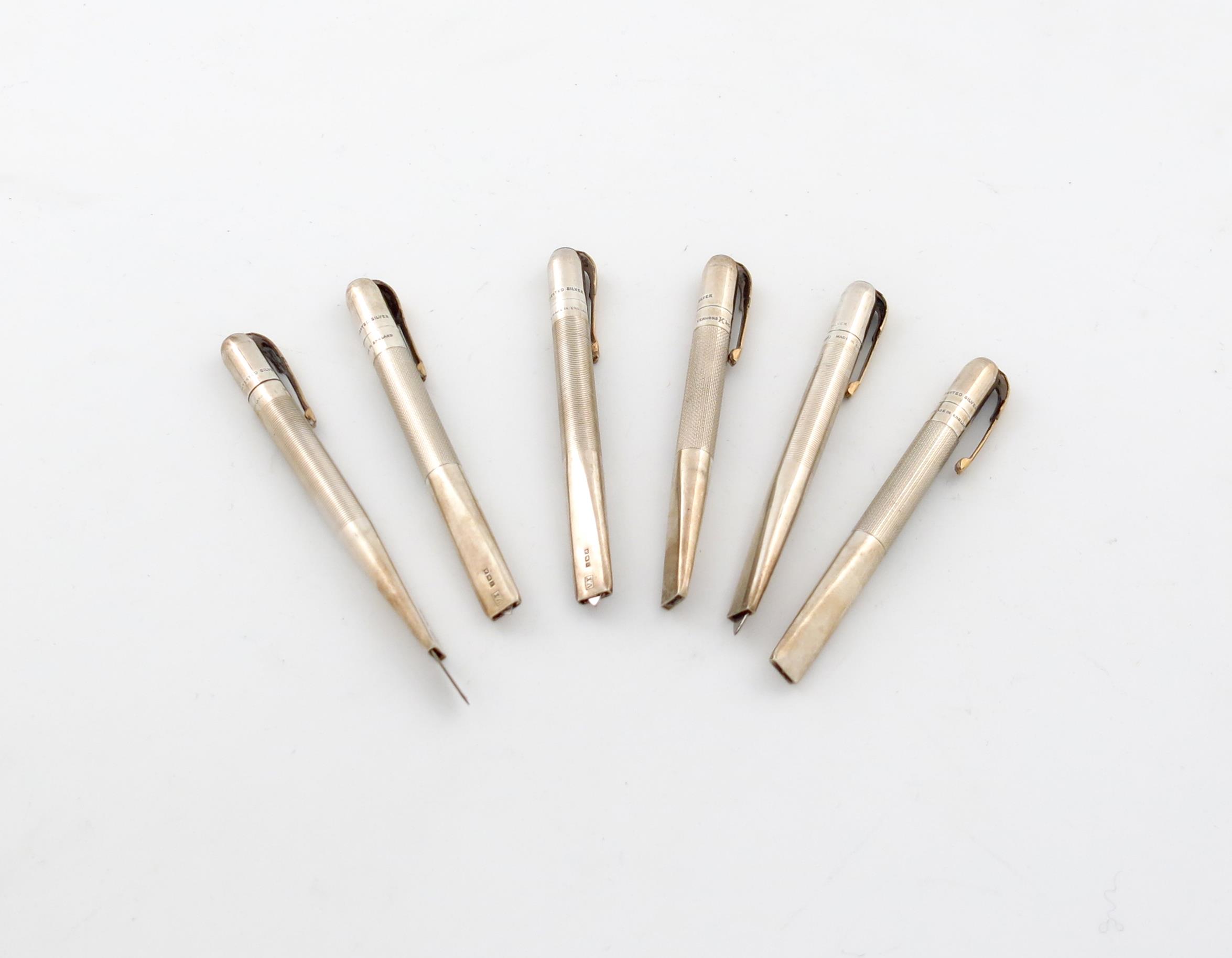 Six silver retractable pen knives,