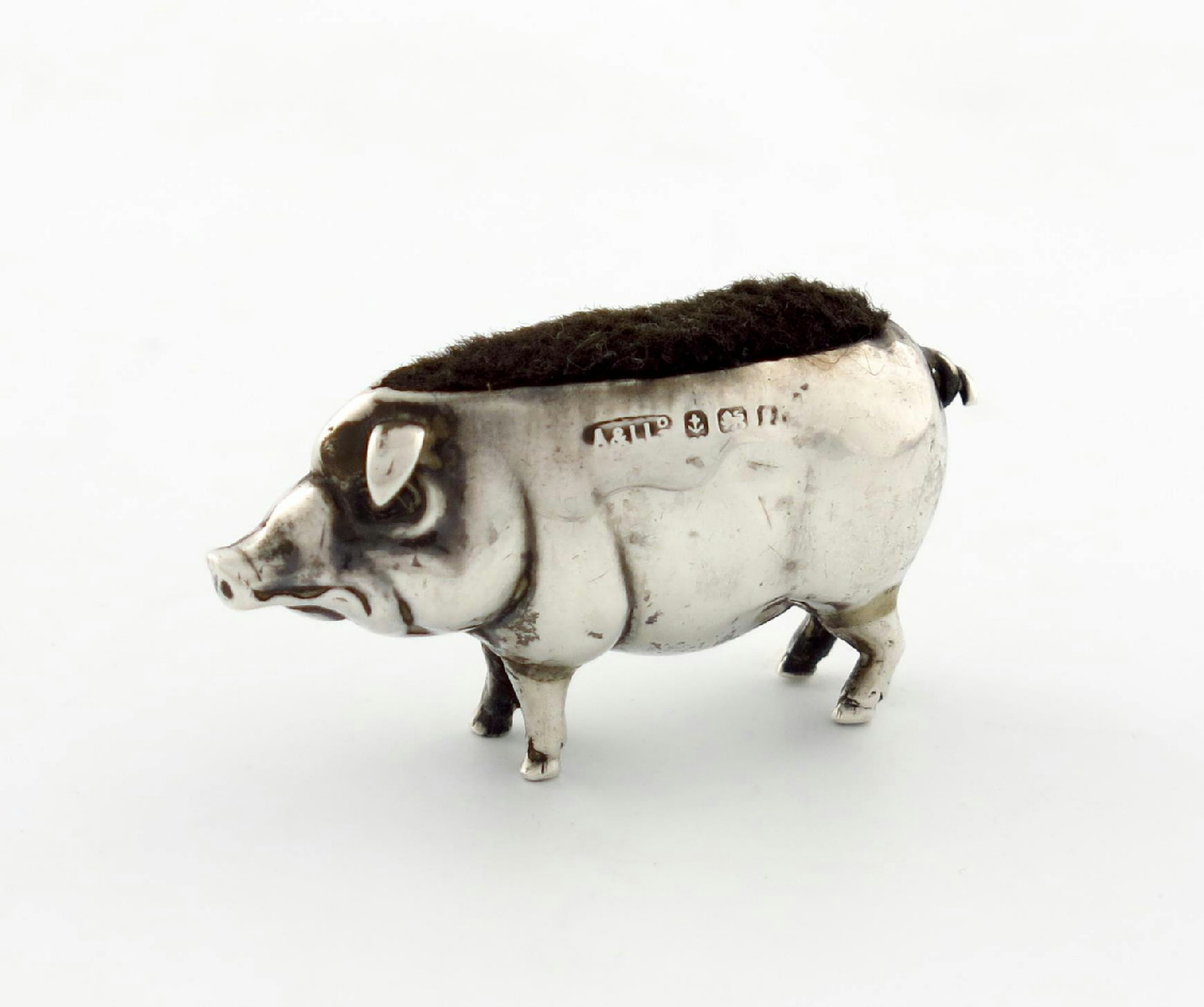 An Edwardian novelty silver pig pin cushion,