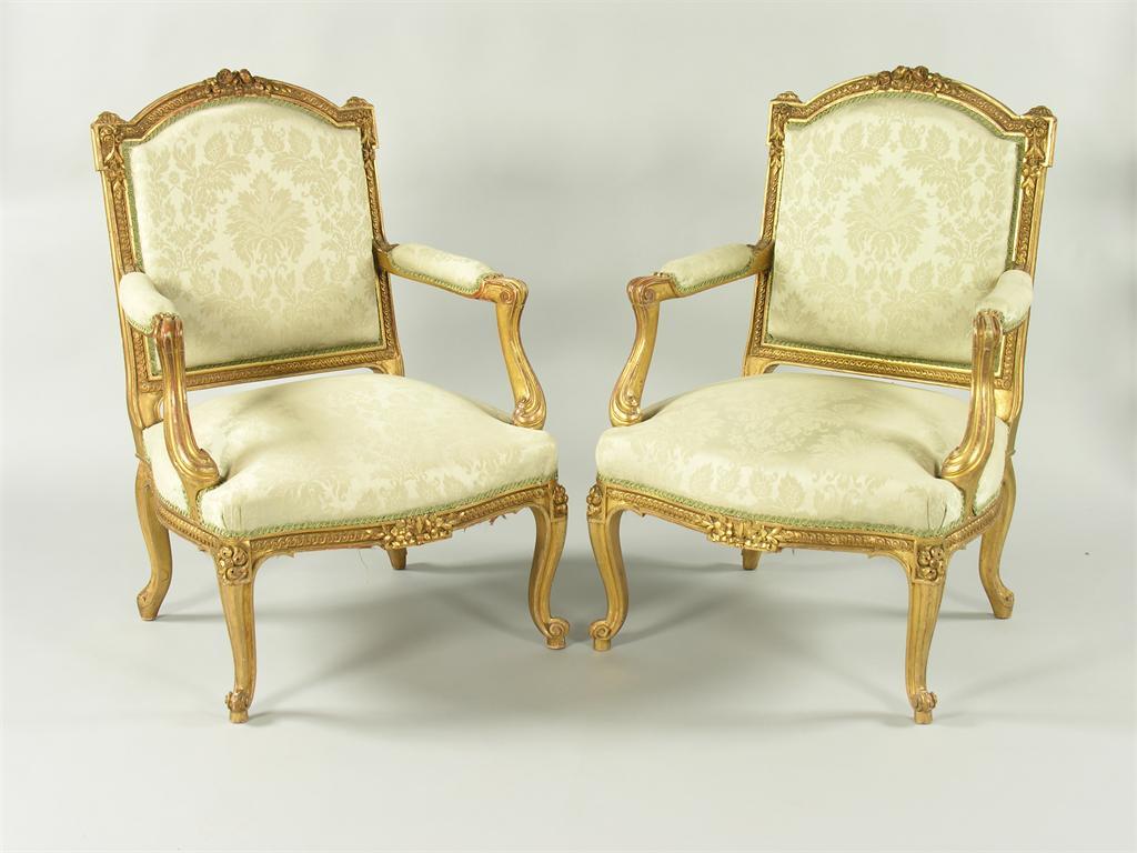A pair of 19th century French carved giltwood fauteuils