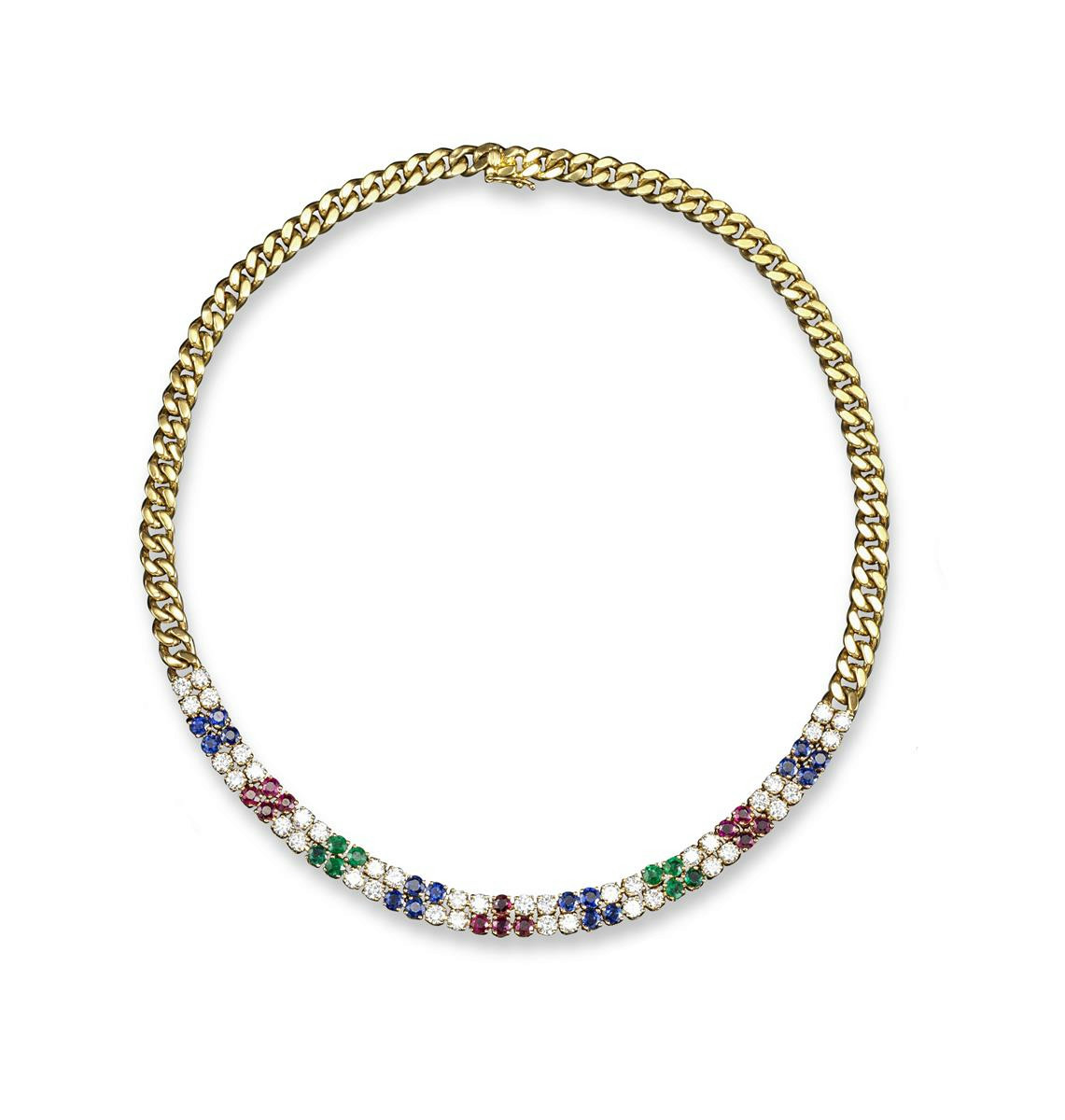 A gem-set gold necklace