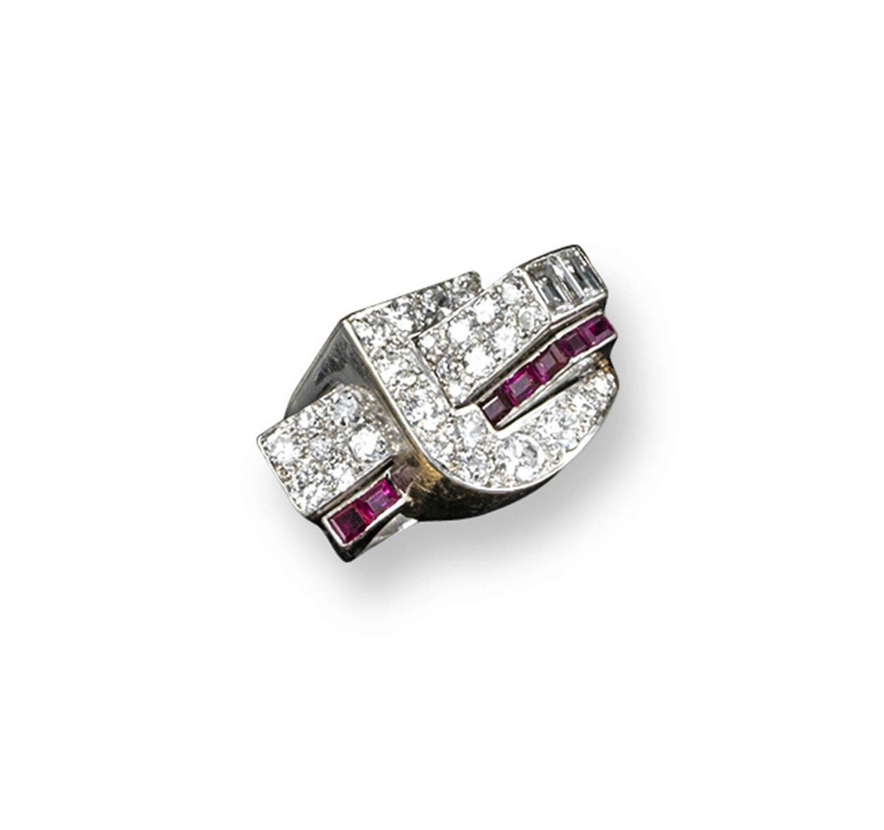 A diamond and ruby-set Odeonesque ring