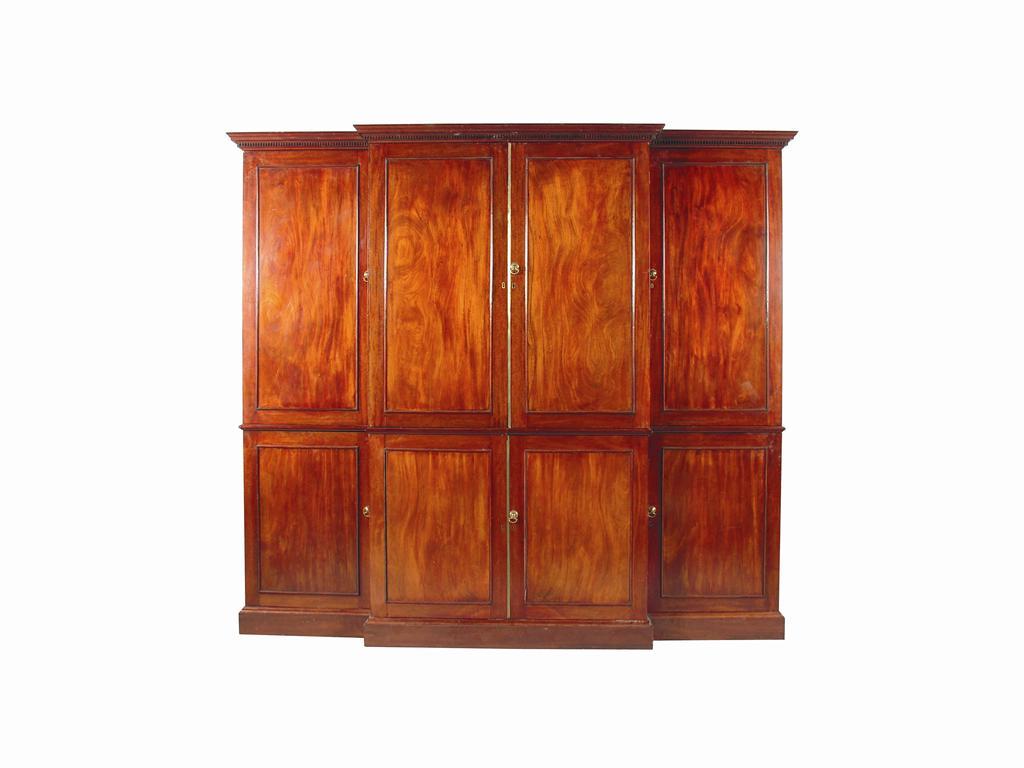 A late George III mahogany breakfront linen press