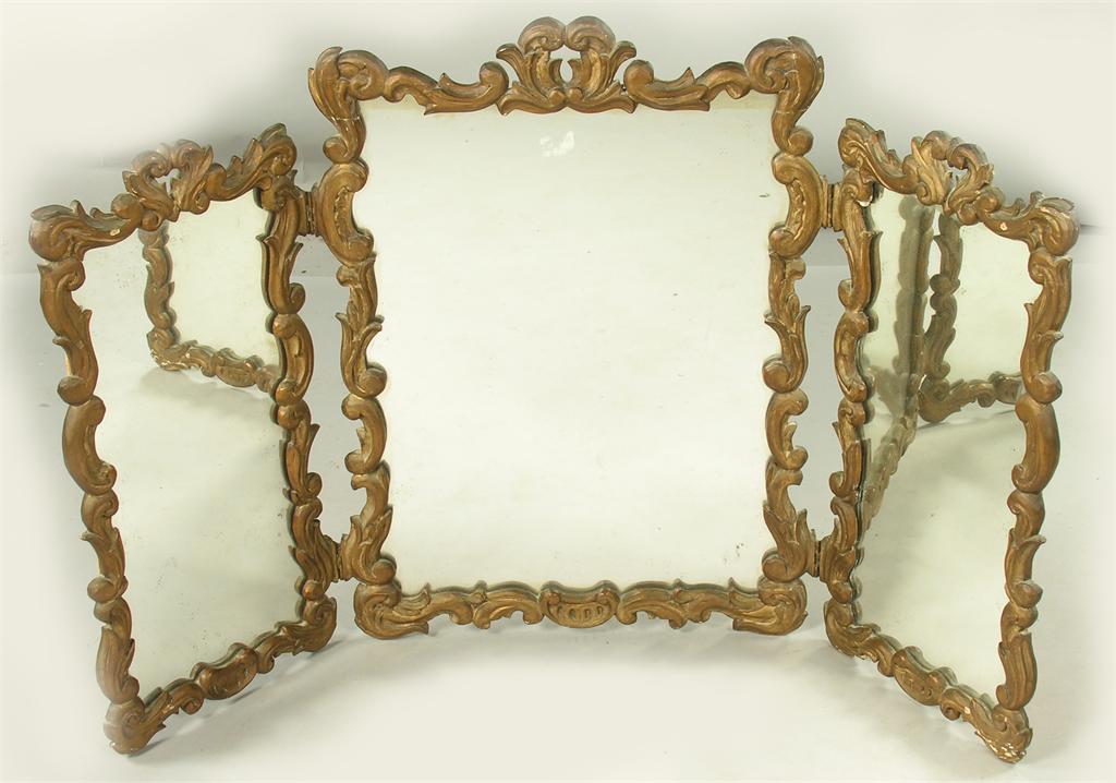 A continental carved giltwood and gesso triptych mirror, 31.5in (80cm) h.