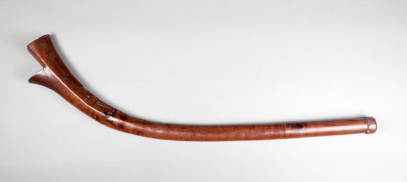 A Fiji gata, spurred club, Melanesia, with a curved cutting edge, ridged tip and spur, 90cm long.