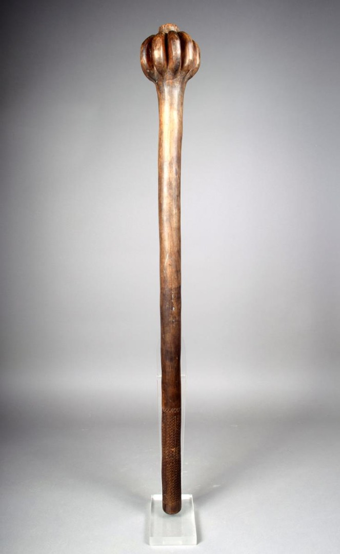 A Fiji vuniaku club, with eight semi-circular lobes to the head and with zig zag carving to the grip, 102cm long.