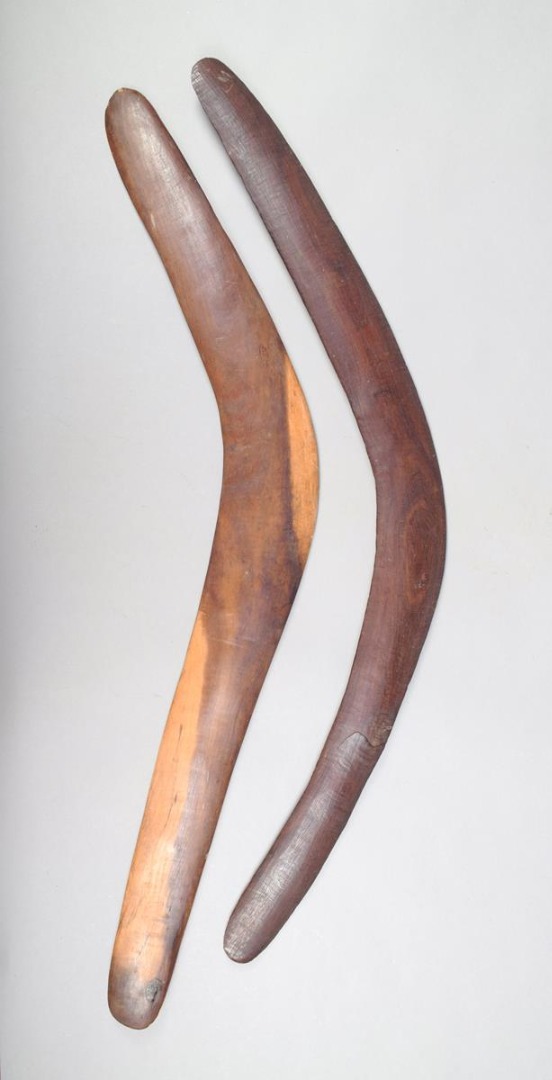 Two Aboriginal boomerangs, 76.5cm and 73cm wide. (2)