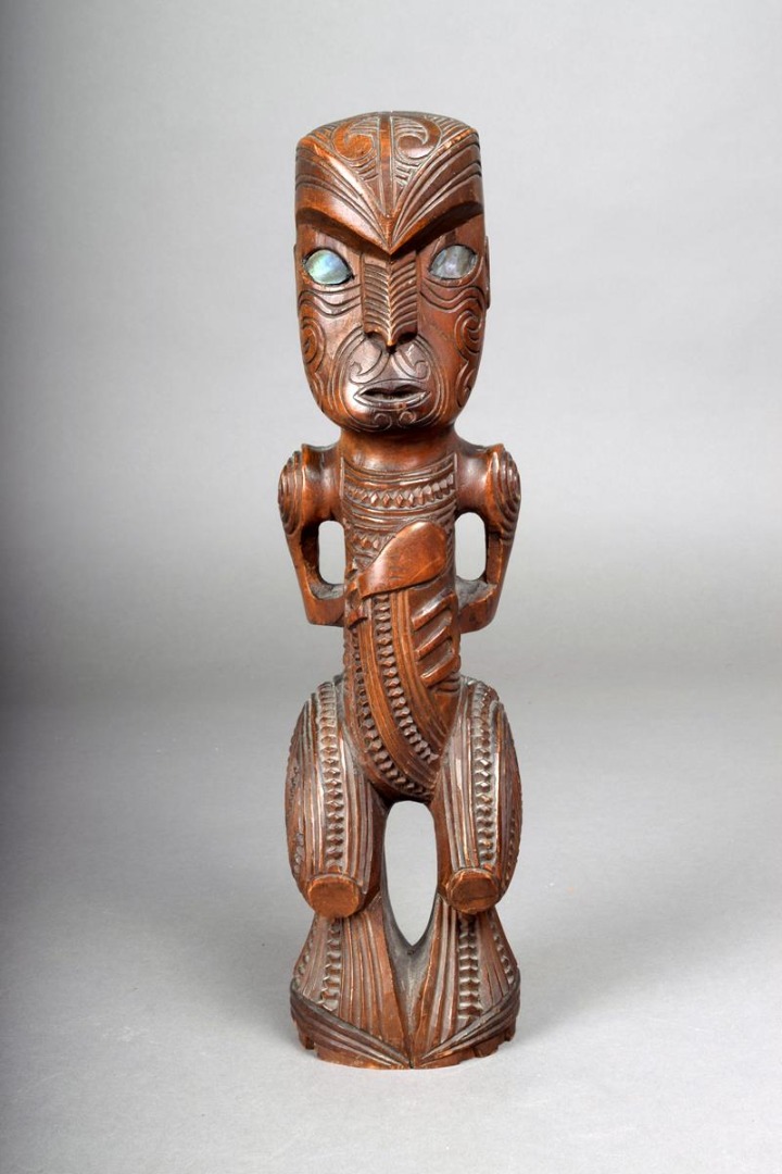 A Maori carved wood standing tiki