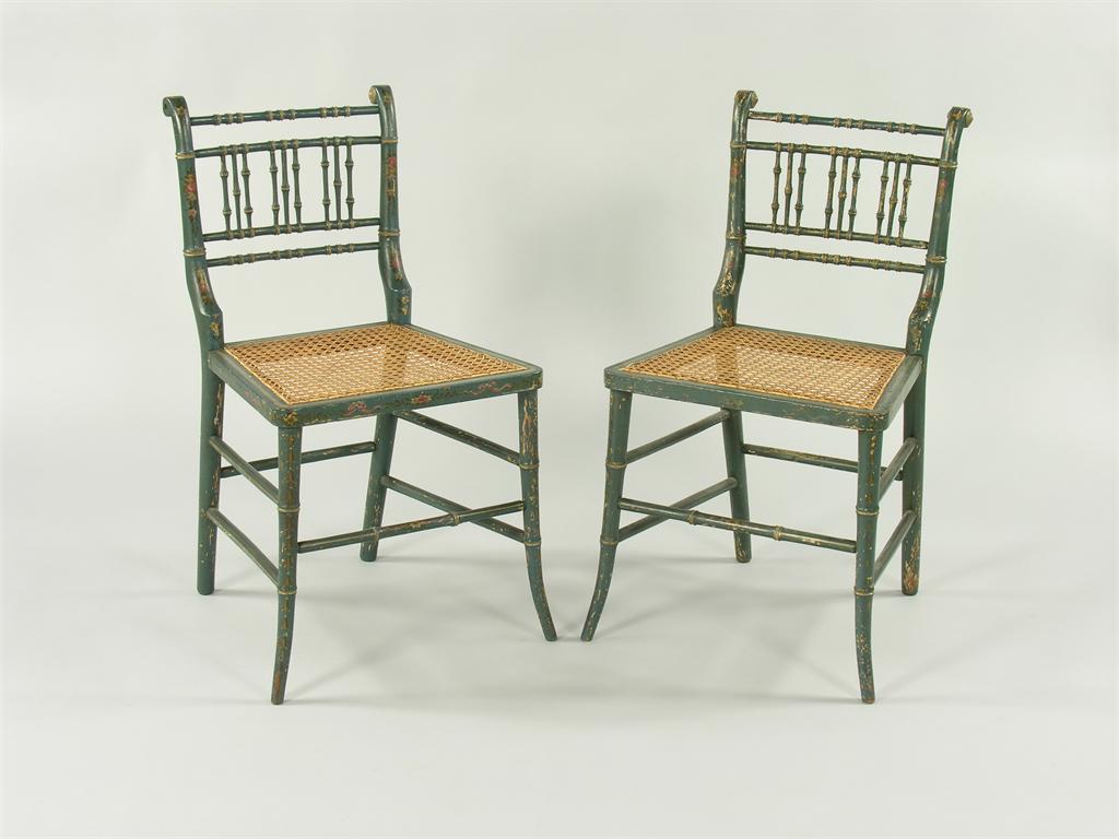 A pair of early 19th century painted and turned beechwood side chairs