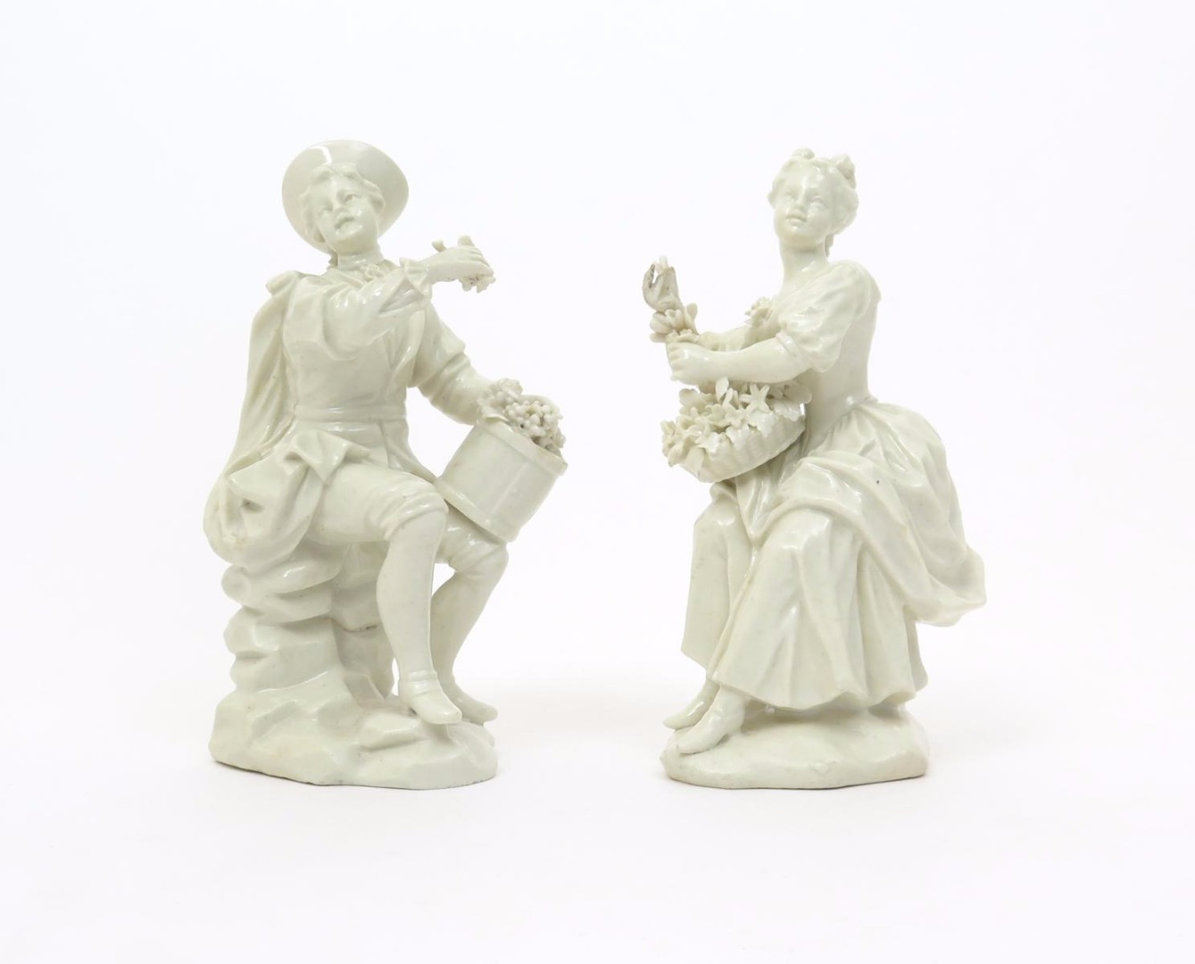 A pair of French soft-paste porcelain figures mid 18th century