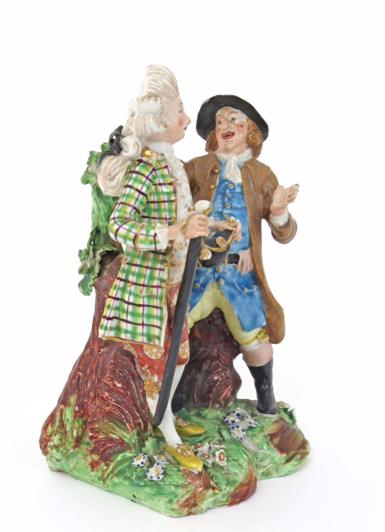 A rare Derby figure group of a Macaroni and a farmer c.1775-80