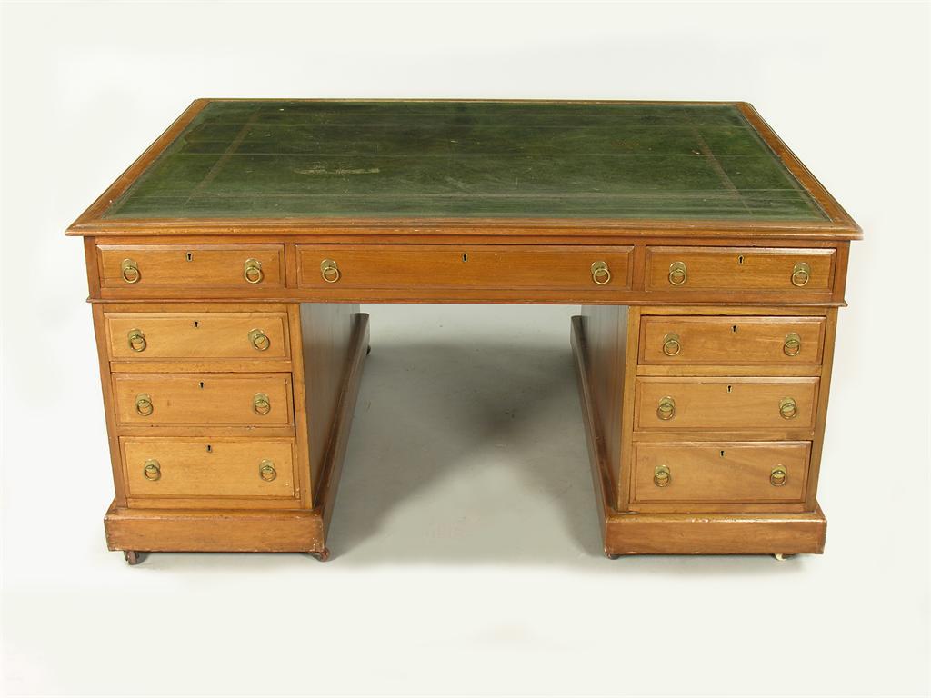 A 19th century mahogany pedestal partner's desk