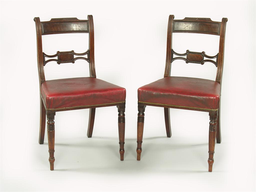 A set of four early 19th century mahogany side chairs, with later leatherette stuffed over seats. (4)