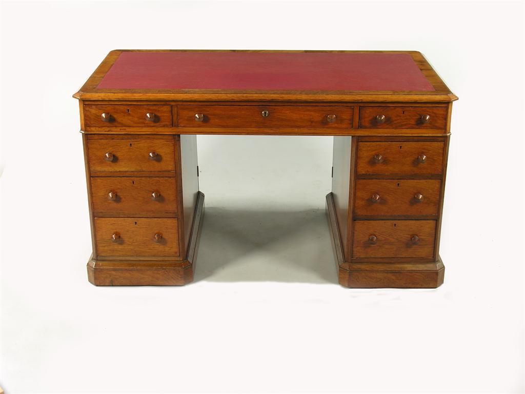 A Victorian pollarded oak pedestal desk