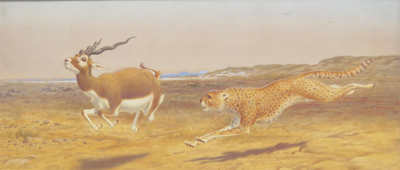 Harrington Bird (1846-1936) A Cheetah pursuing an Antelope Signed Watercolour 30 x 68.5cm; 12 x 27in